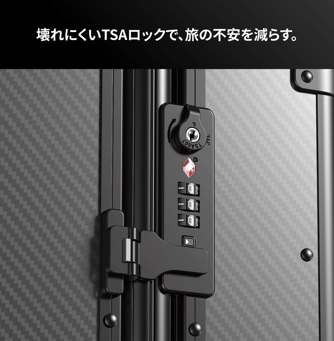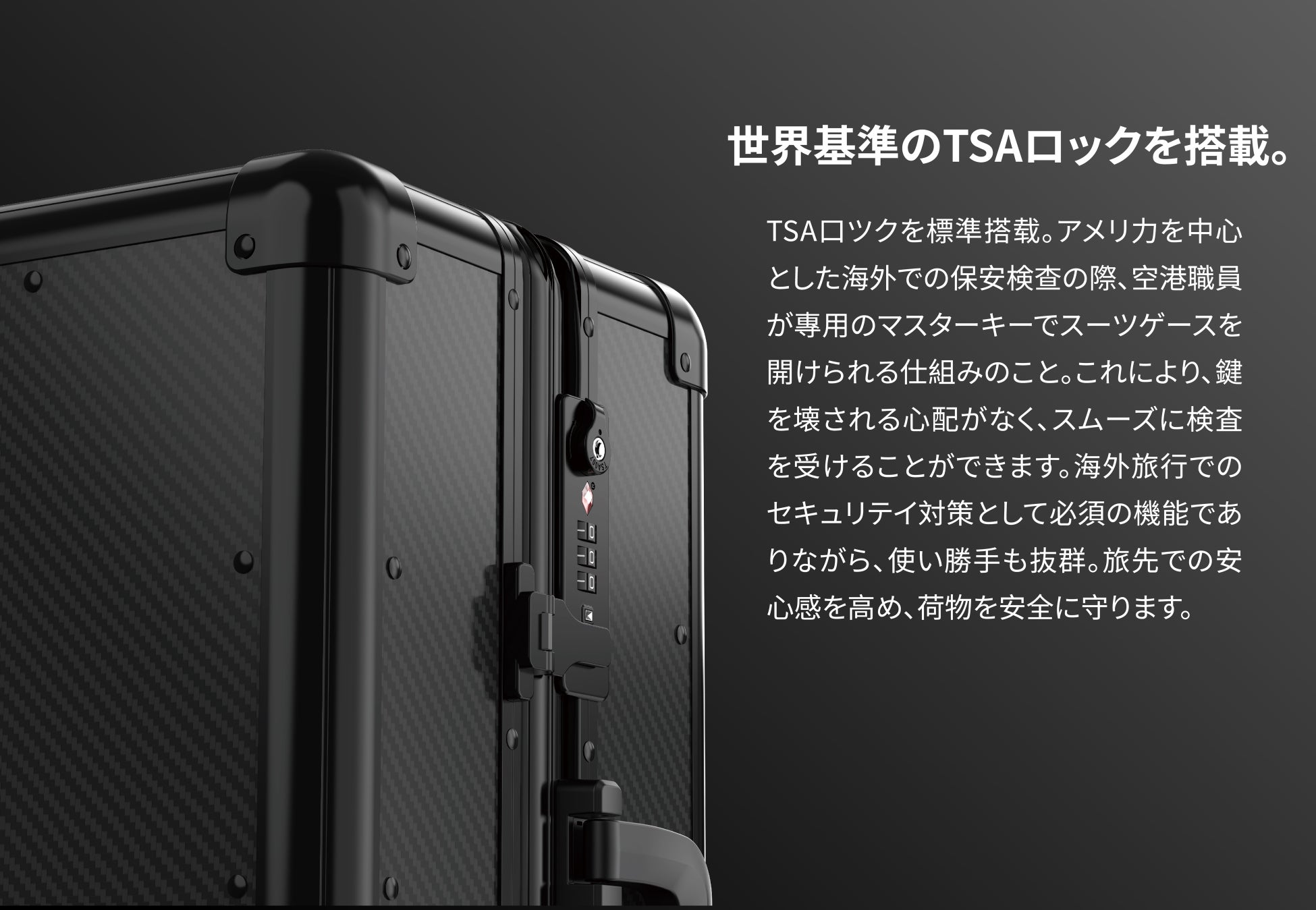 本製品は、海外渡航や預け荷物でも心配なし、TSAロックを採用しています。