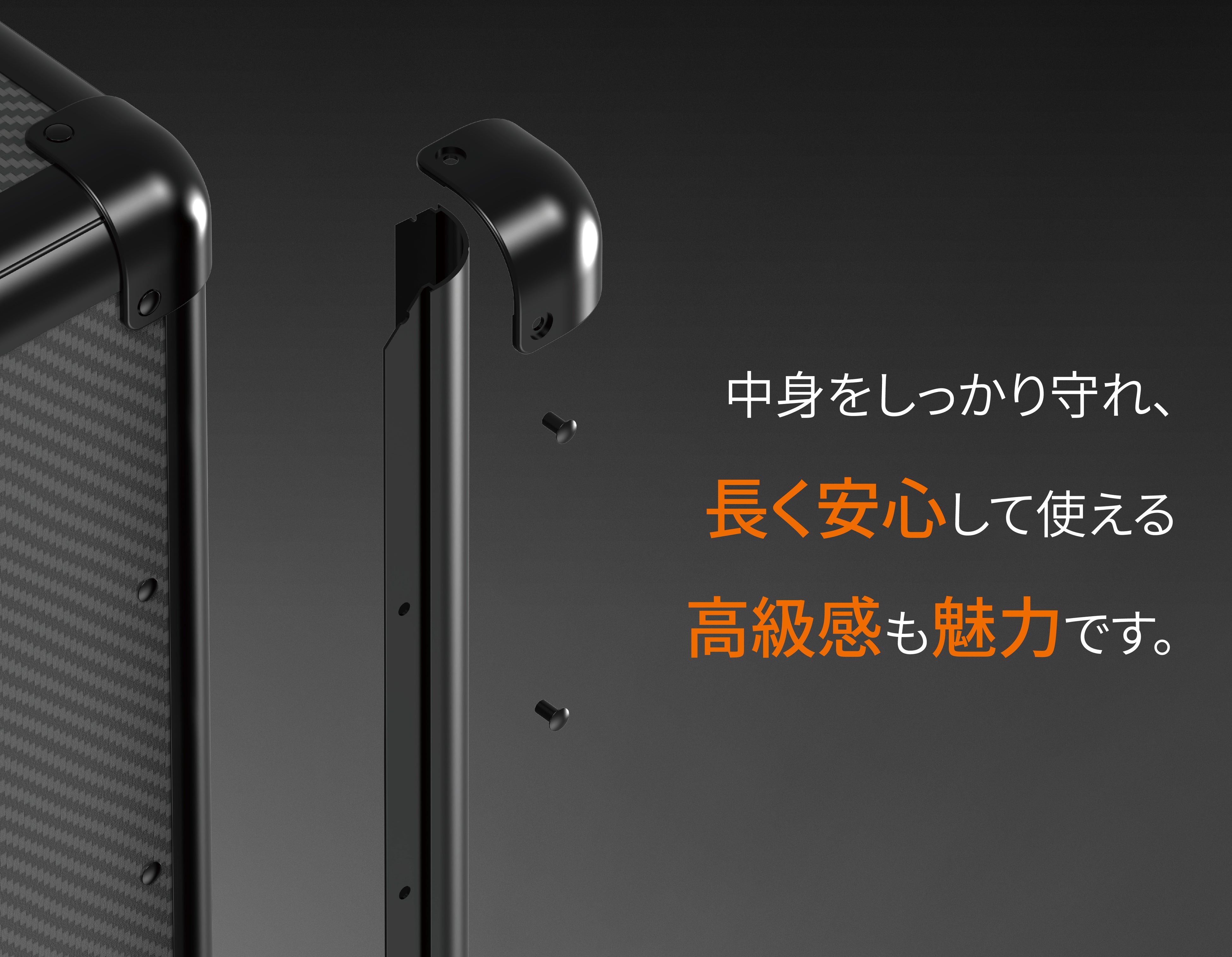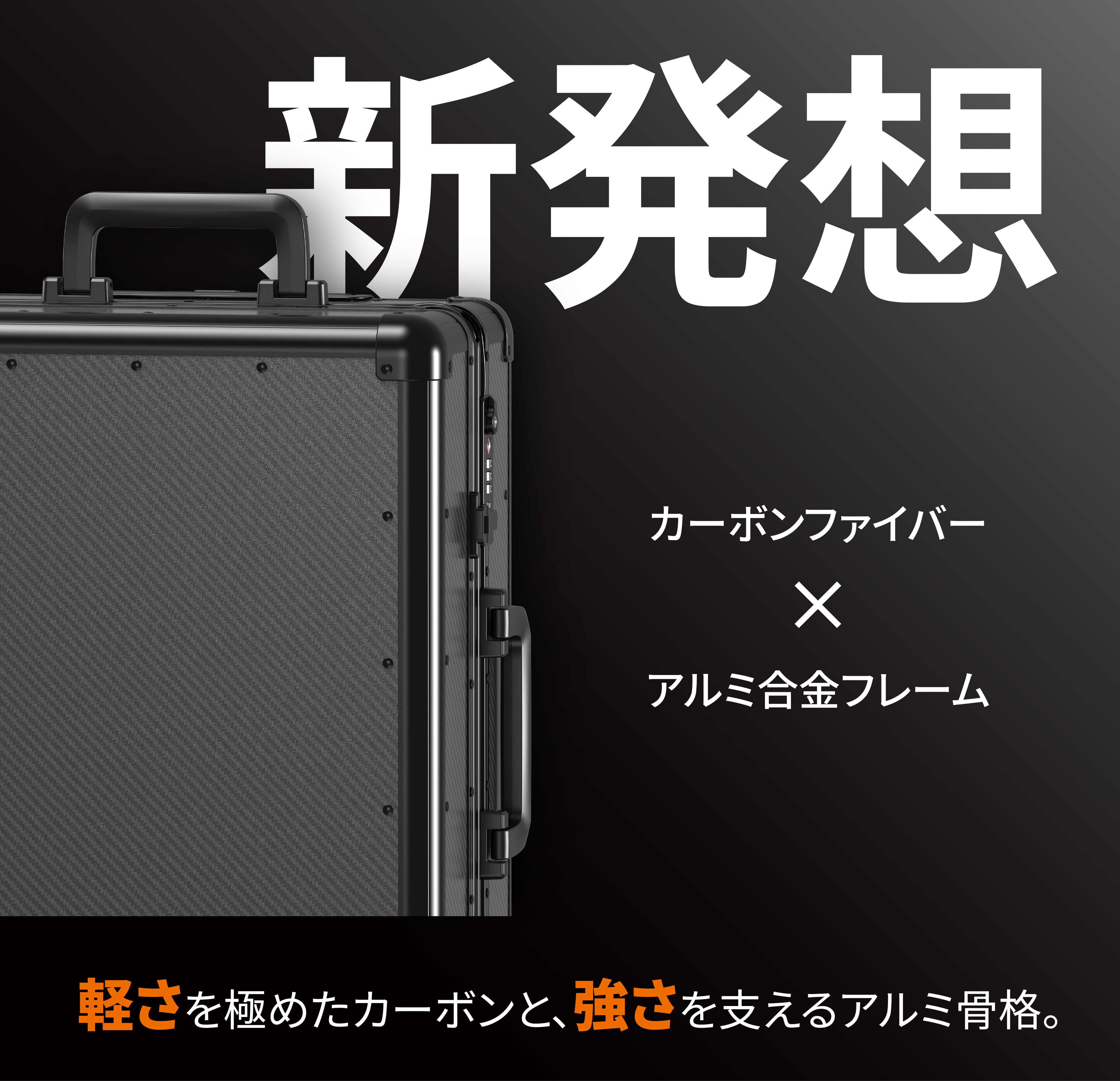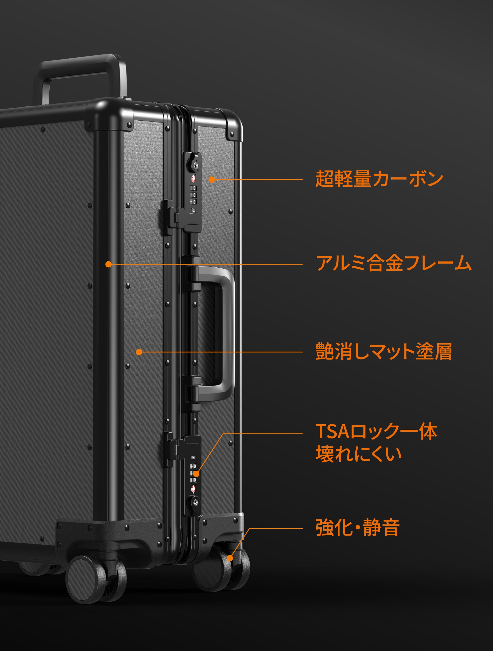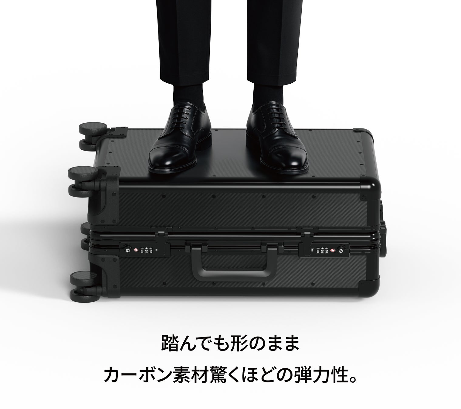 カーボン×アルミ合金フレームのハイブリッドスーツケース。
