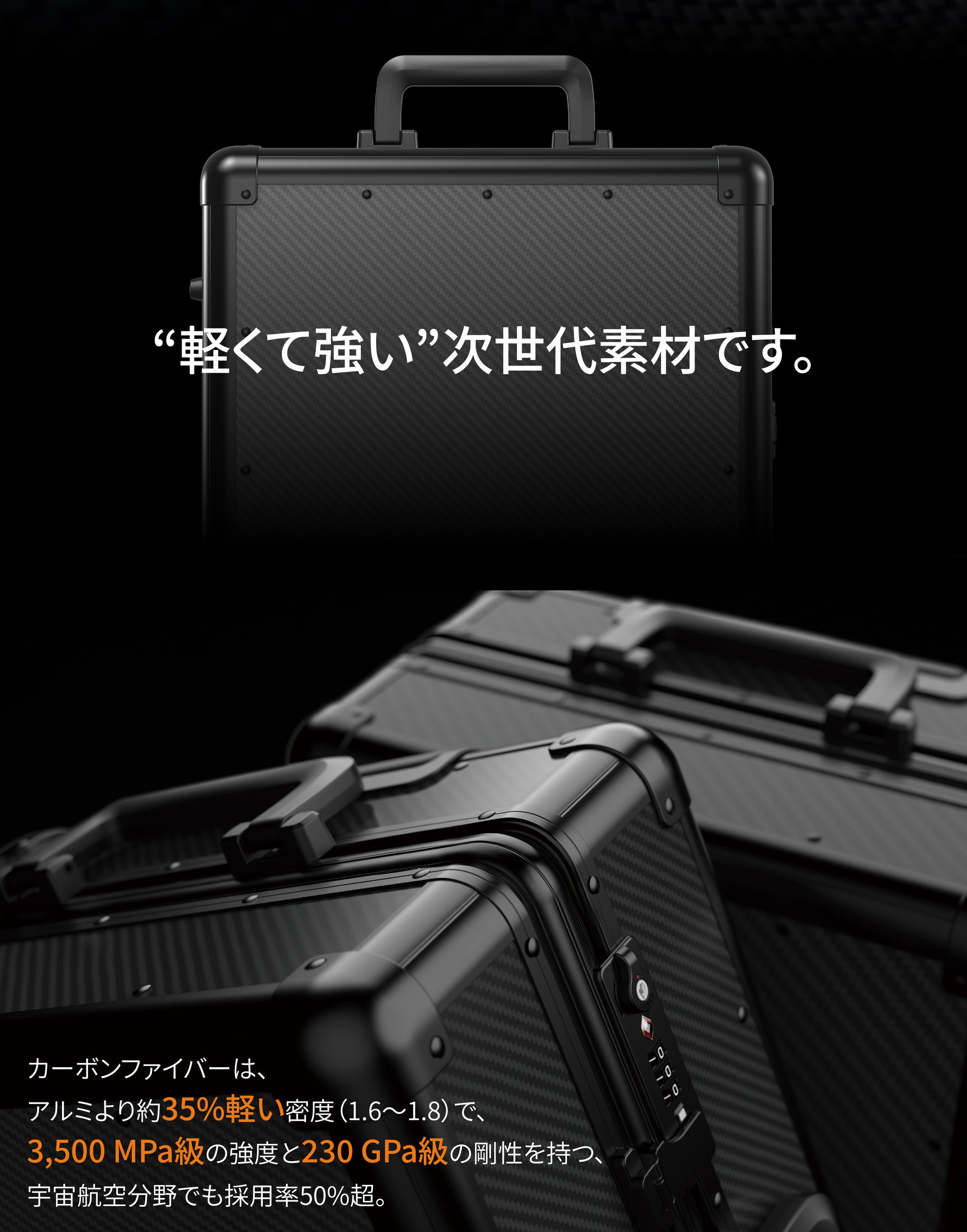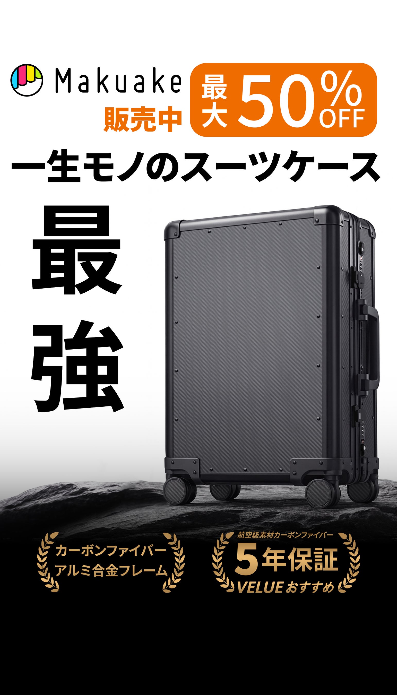 超軽量航空級素材カーボン製「最強なスーツケース」がMakuakeにて本日より先行割引販売開始!超軽量航空級素材カーボン×アルミ合金フレームで一生モノ