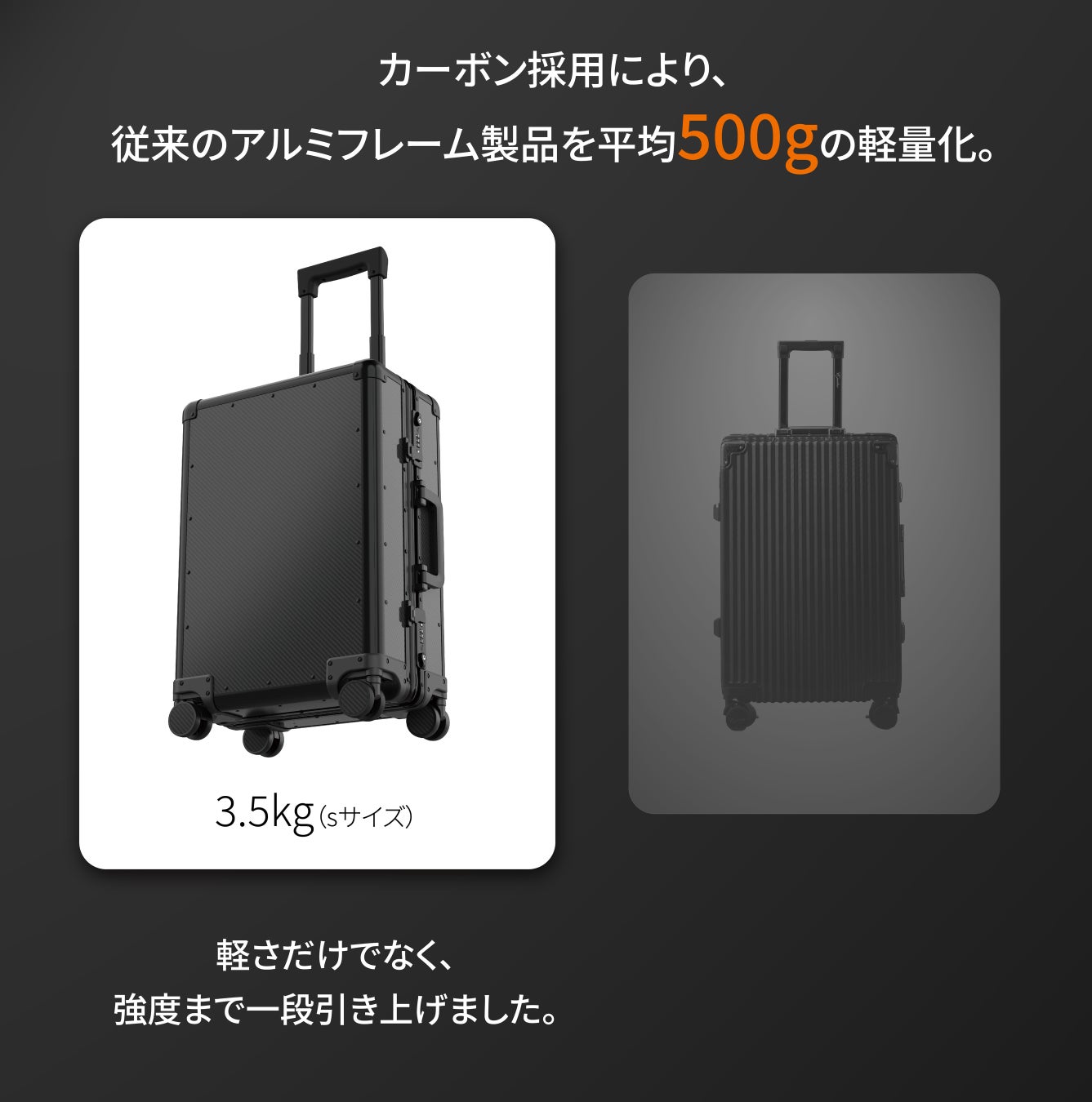 従来のアルミ合金フレームスーツケースと比べて平均500gの軽量化を実現。