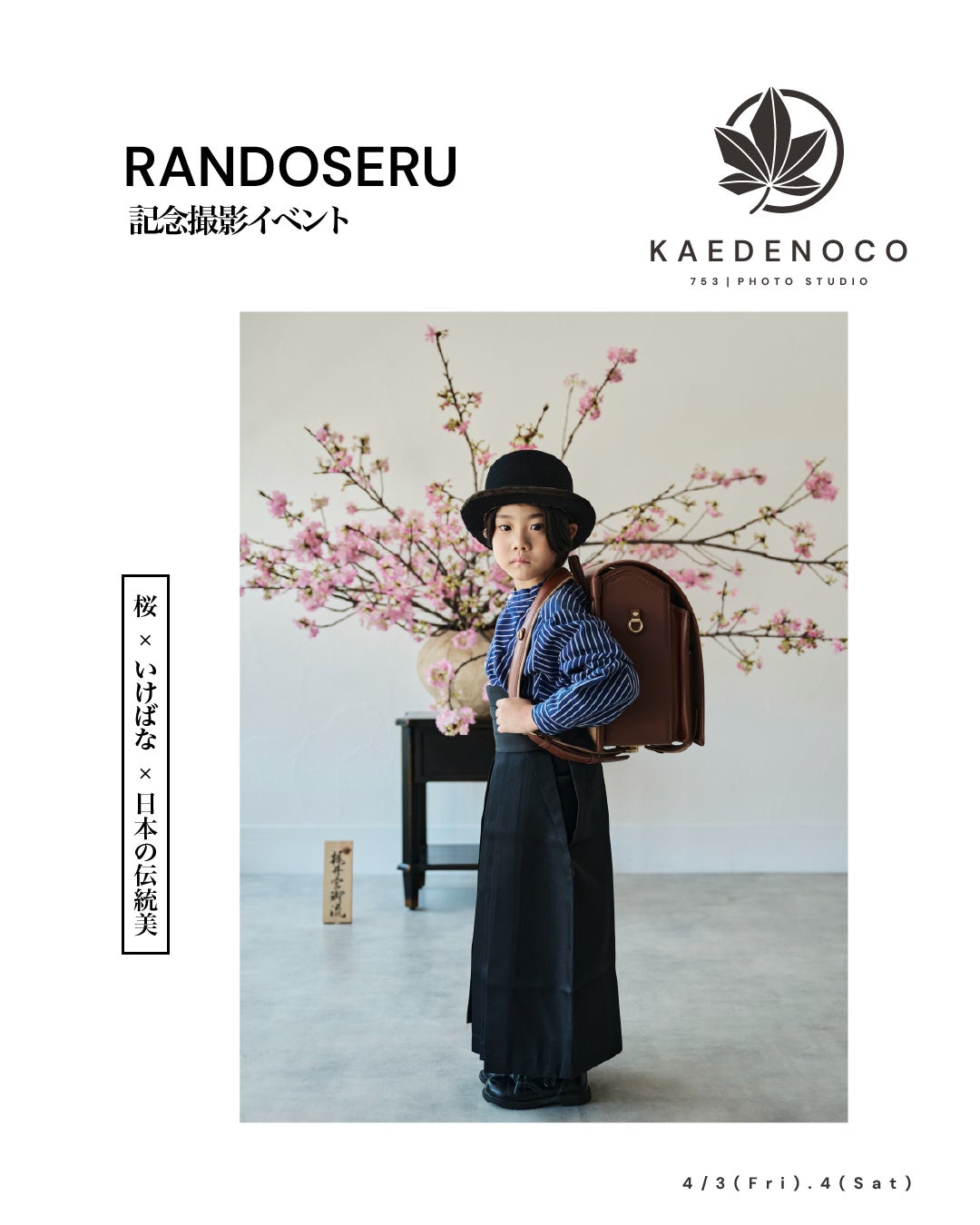 KAEDENOCOでは、桜の季節に合わせたランドセル撮影会を期間限定で実施します。