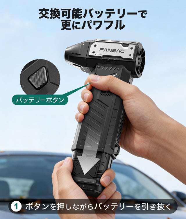 本製品は、最大風速240km/hの強力なエアフローにより、これまで取り切れなかった細部のホコリや洗車後の水滴を吹き飛ばす高性能ツールです。コンパクト設計ながら、プロレベルの強力噴射性能を実現しました。