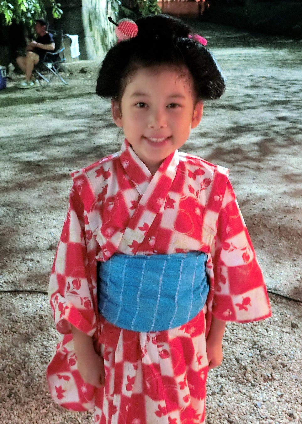 舞踊歴50年の先生が優しく楽しくお稽古。振付けは簡単だけども本格的に基礎から学べます。 振付けだけでなく浴衣の着付けやお辞儀の仕方、着物のこと等、色々お教えします 3~4年生なら浴衣を2~3回で着られるようになりますよ。ダンスが苦手というお子様には特にオススメ! 日本舞踊はダンスではなく所作事(しょさごと)と言って、着物を着た時の 美しい所作、しぐさを覚え、音楽に合わせて踊る事なのです