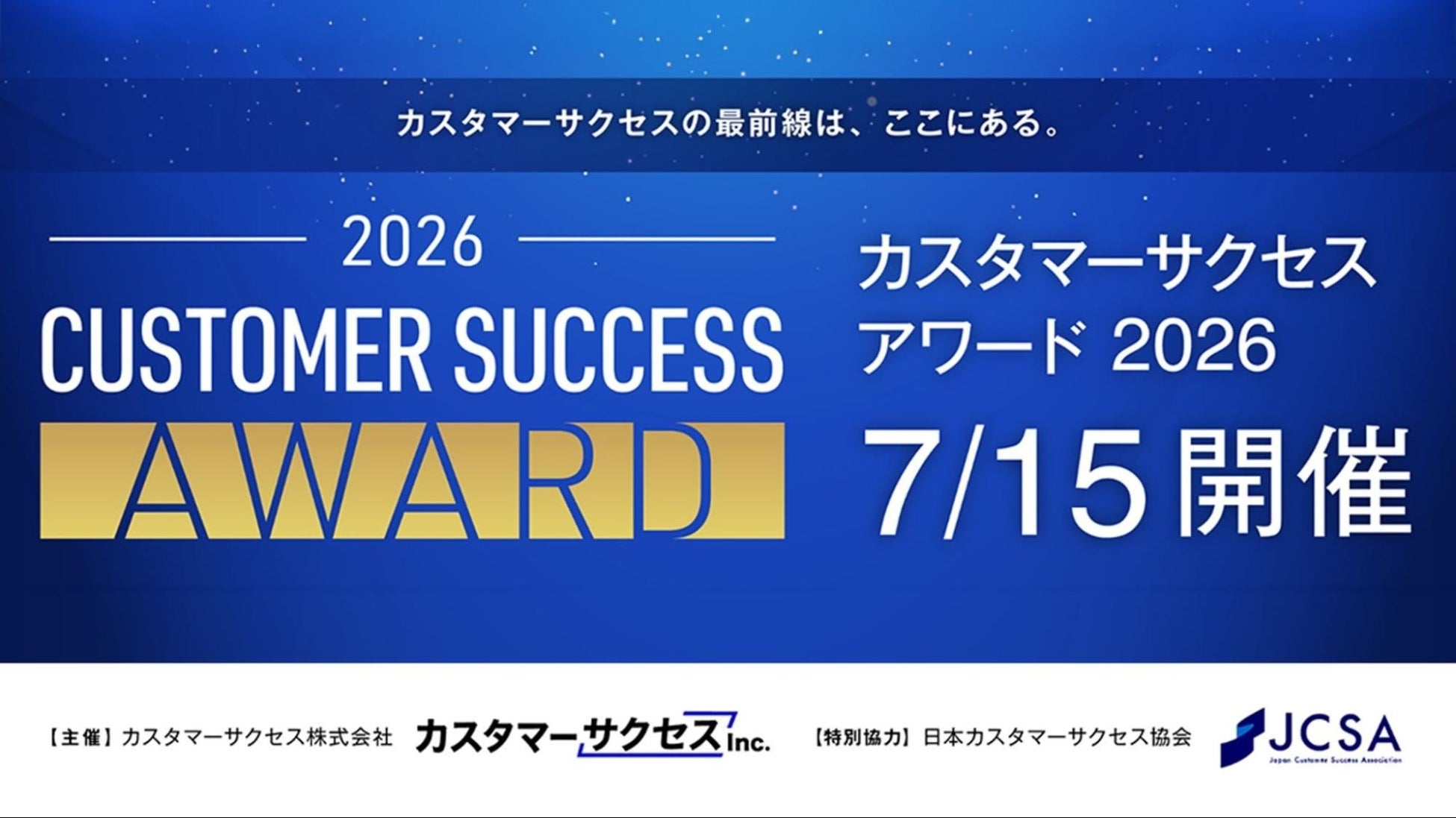 カスタマーサクセス株式会社(本社:東京都千代田区、共同代表:岩熊 勇斗・梶原 将翔)は、2026年7月15日(水)にカスタマーサクセスのベストプラクティスを共有する「カスタマーサクセス・アワード2026」を六本木にて開催します。本イベントは、一般社団法人日本カスタマーサクセス協会の特別協力のもと、国内におけるカスタマーサクセスの普及と質の向上を目的として実施されます。
