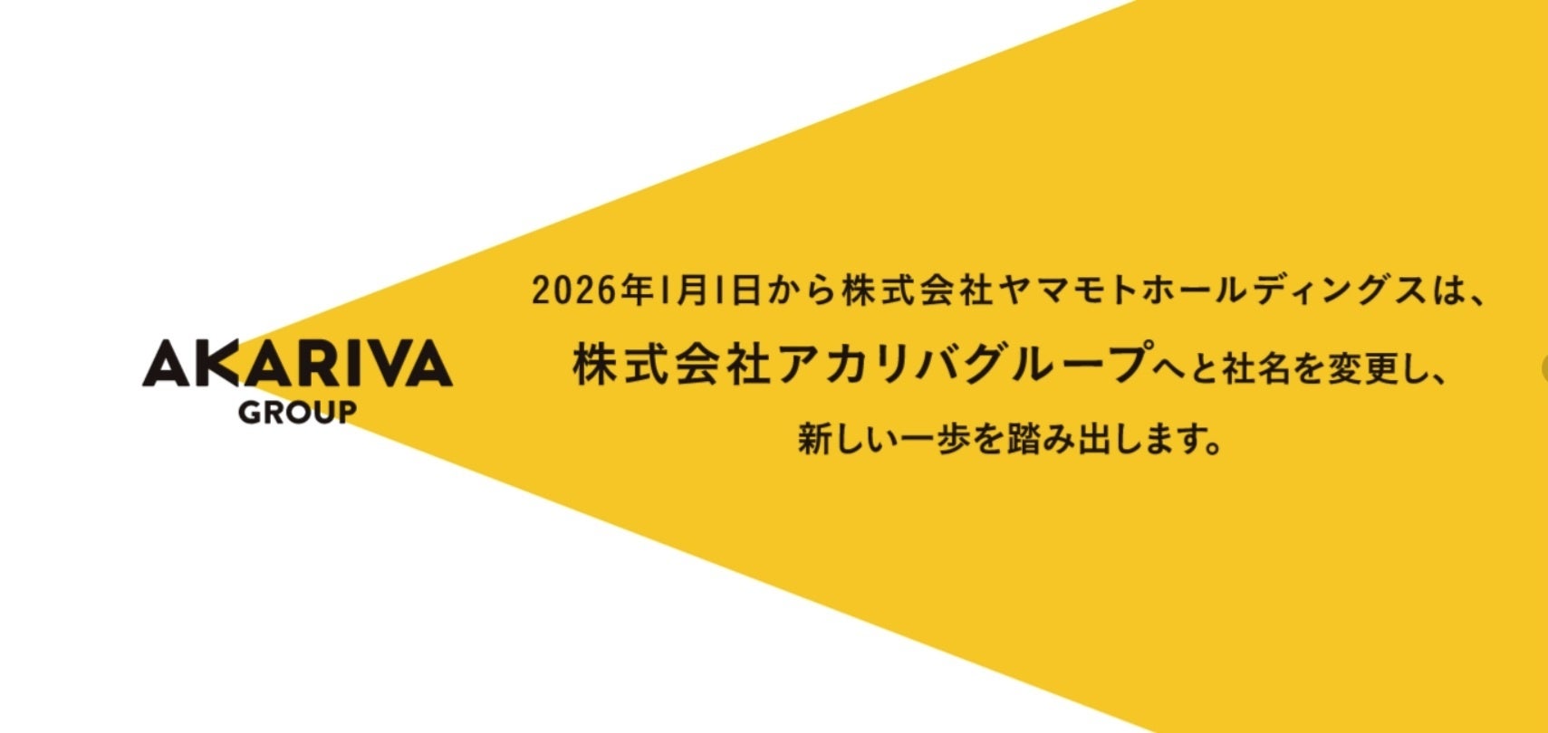 このたび、株式会社ヤマモトホールディングスは、2026年1月1日より「株式会社アカリバグループ」へ社名を変更し、新たなスタートを切ります。