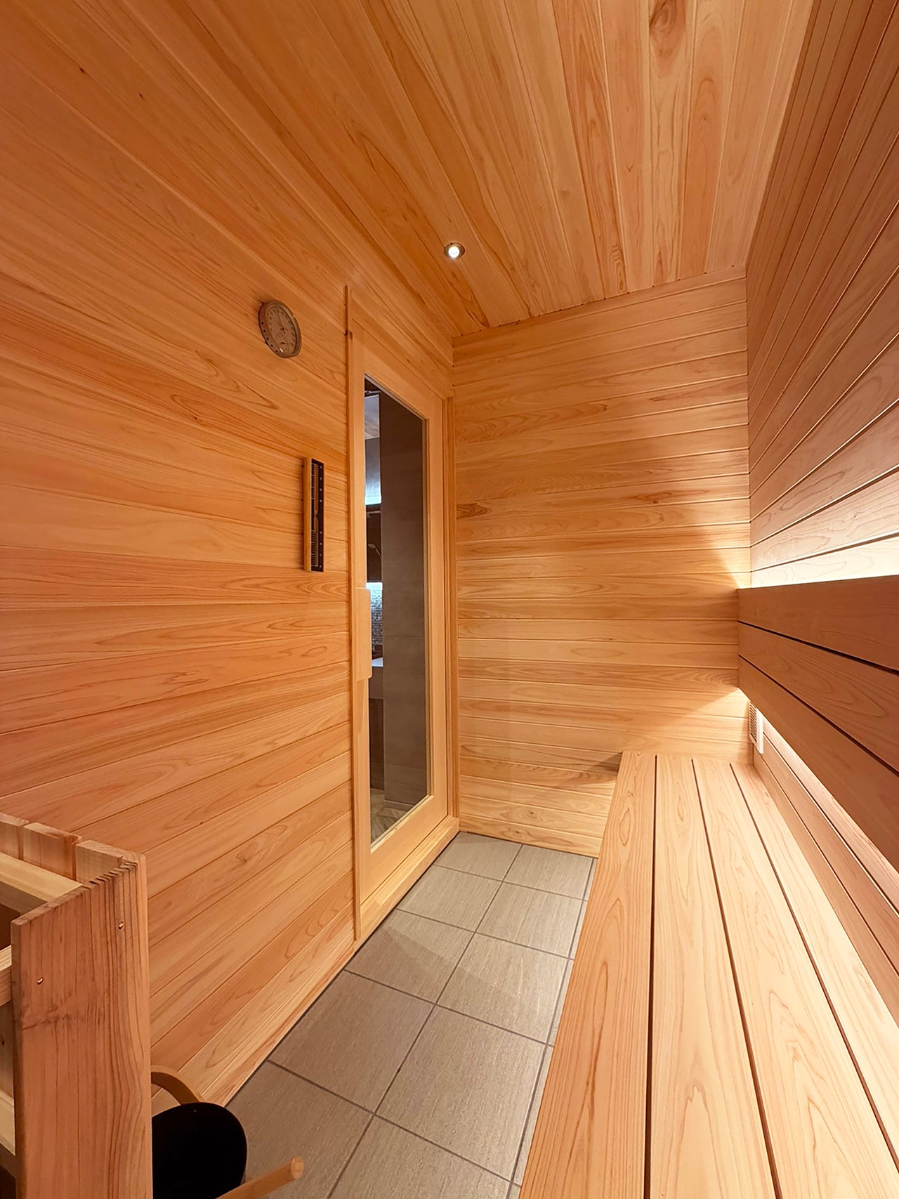 水風呂にはチラー(冷却装置)を導入しております。チラーにより水温を常に一定に保つことで、季節や外気温に左右されることなく、常に最適な冷たさをご提供いたします。複数名で連続してご利用いただいた場合でも水温が変化しにくく、サウナの魅力を最大限に引き出します。