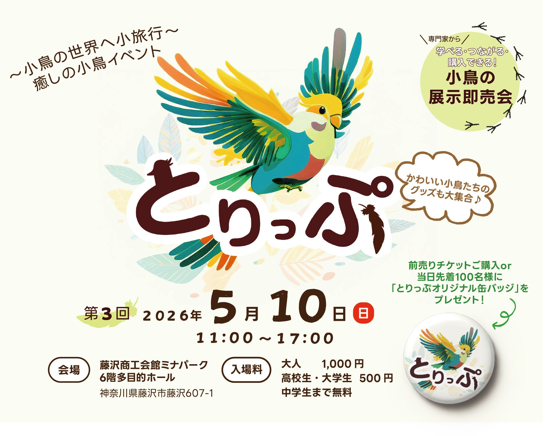 【第3回】小鳥の展示即売会「とりっぷ」開催!(2026/5/10・藤沢駅すぐ)