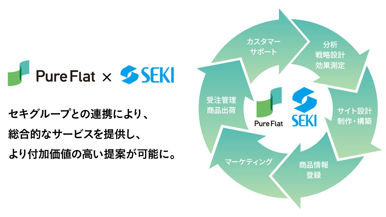 ECモール運営支援に強みを持つピュアフラットが、セキグループとの連携でより付加価値の高い総合的なマーケティングサービスを提供開始
