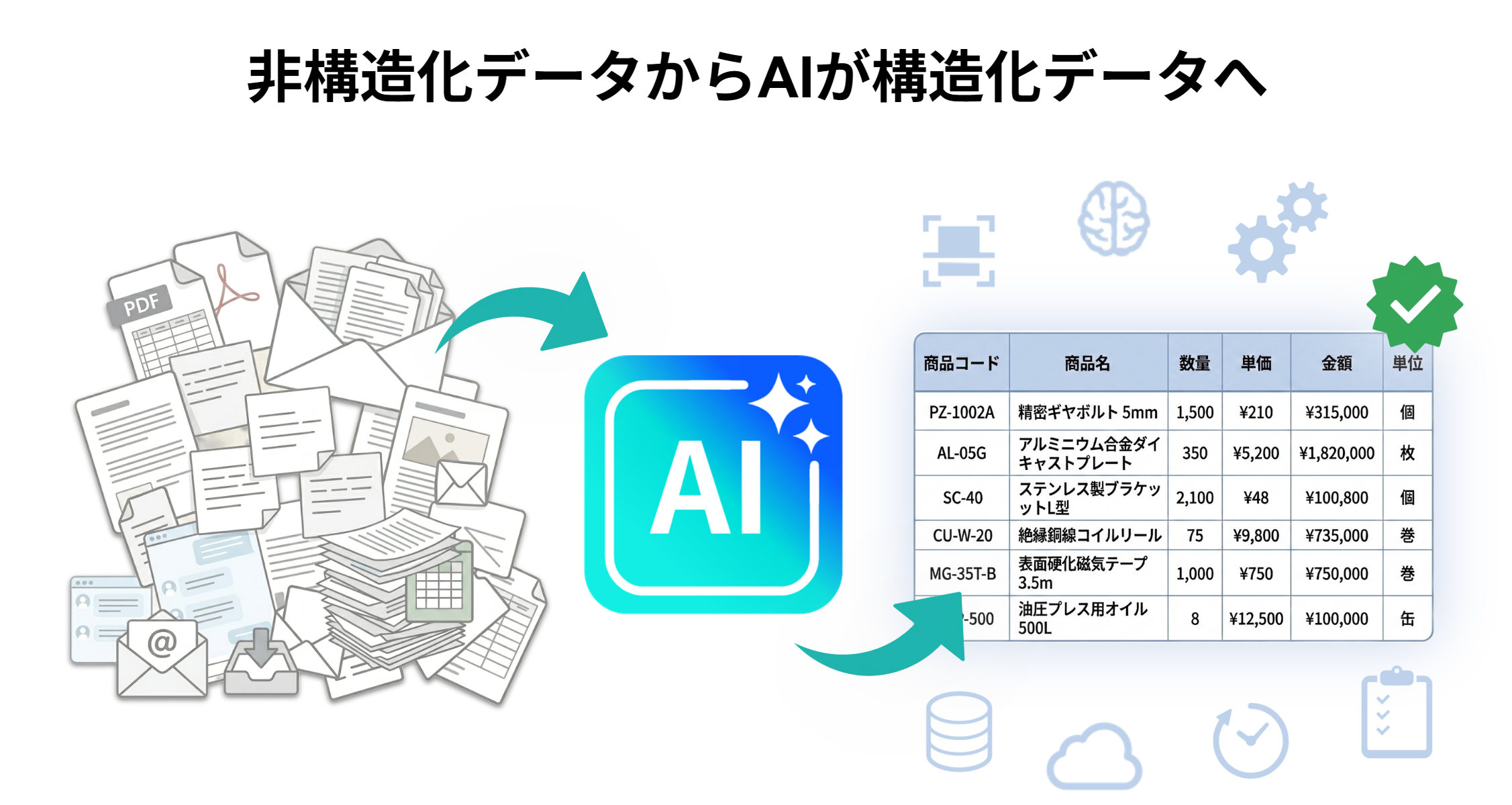 本サービスは、非構造化データが集中する「受注領域」を起点に、AIが業務を理解・判断し、ERPと連携して自律的に業務を実行する「エージェンティックAI ERP」の第一弾となるソリューションです。