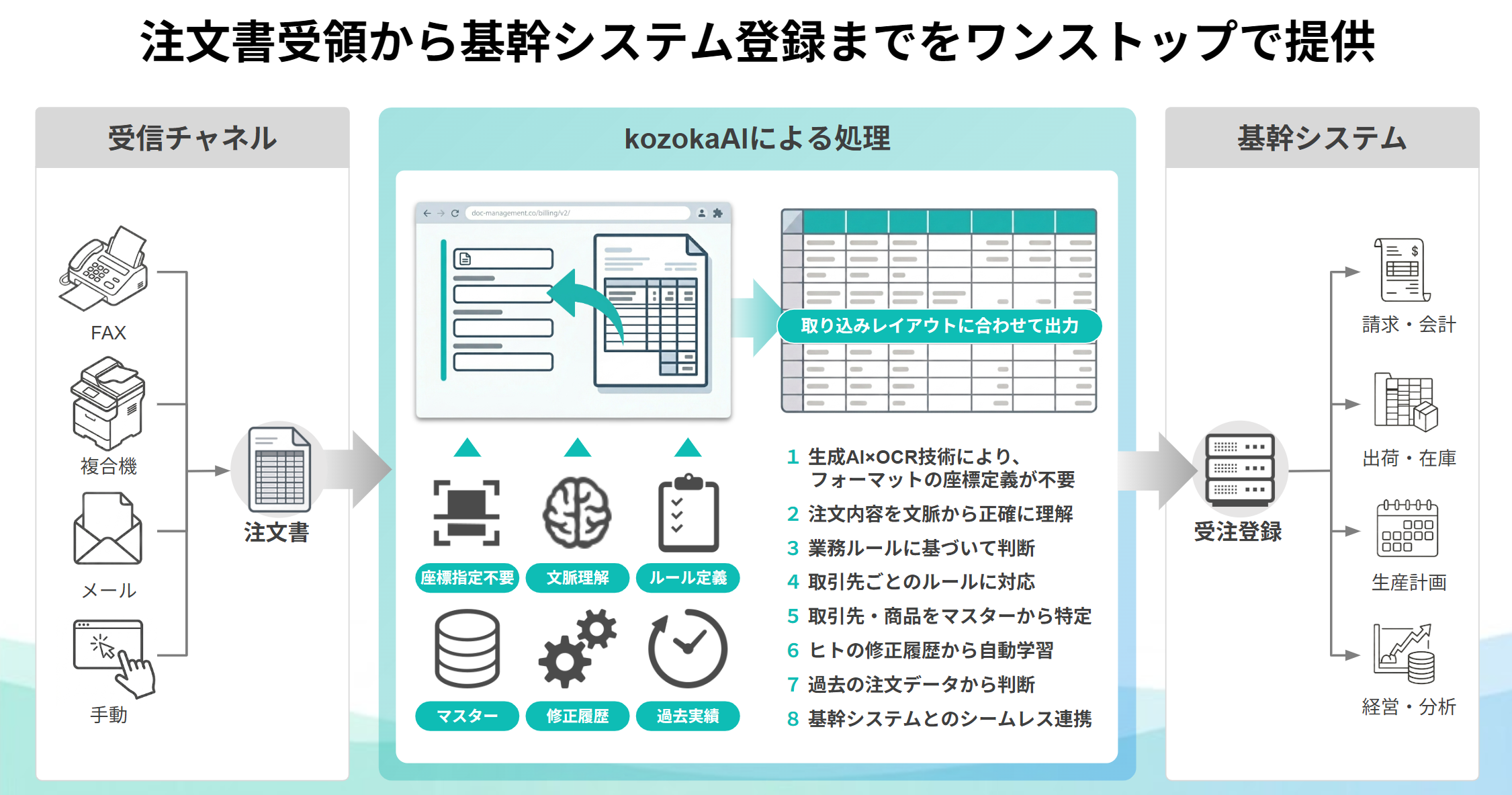 製造・流通現場の「受注」課題を即座に解決。ERP自律化の起点となる「受注領域」から、エージェンティックAI ERPの第一弾となる「kozokaAI 受注AI-OCR」提供開始