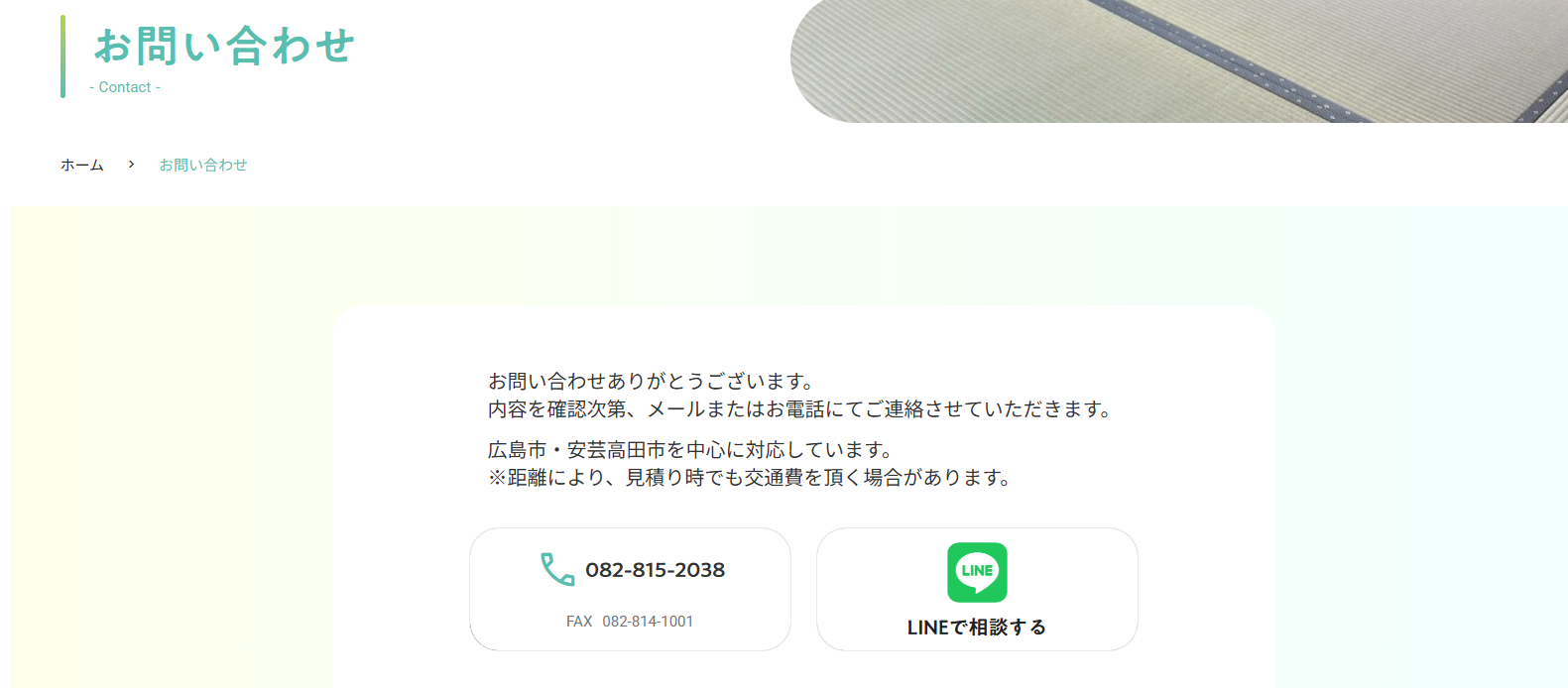 納得の畳選びをサポートしますので、気になることがございましたら気軽にお問い合わせください。