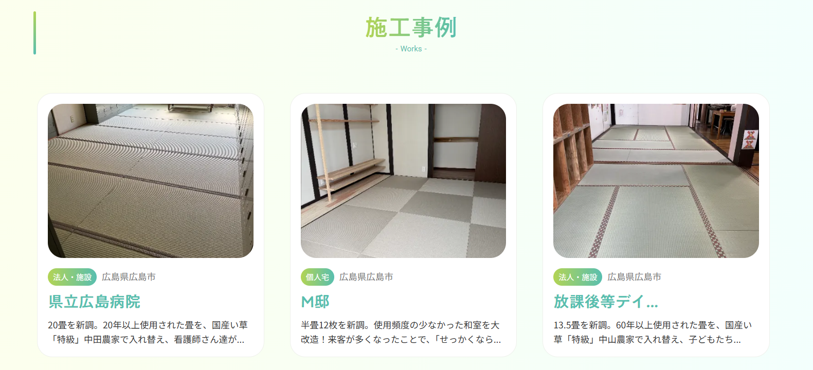 畳の表替え(張り替え)・新調・裏返しなど、サービス内容をよりわかりやすく紹介する構成に刷新