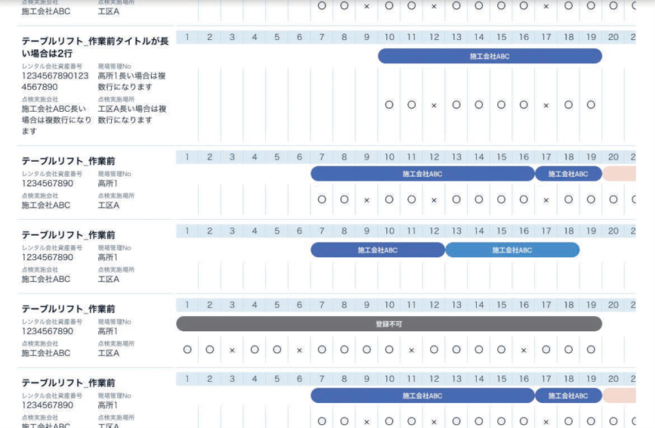 映、現場個別の管理番号の設定も可能。現場にある全機材を1つの画面で即座に把握できます。