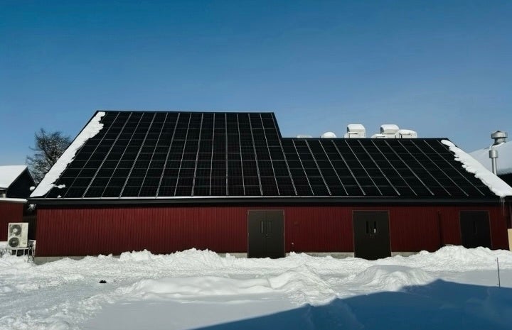 北海道特有の積雪課題に対し、カナメ社製「カナメソーラールーフ」を採用(施工協力:ミライコネクト株式会社)。酒蔵の意匠を損なうことなく、冬場の落雪をスムーズにし、雪の合間の貴重な日射も余さず電力へと変換します。