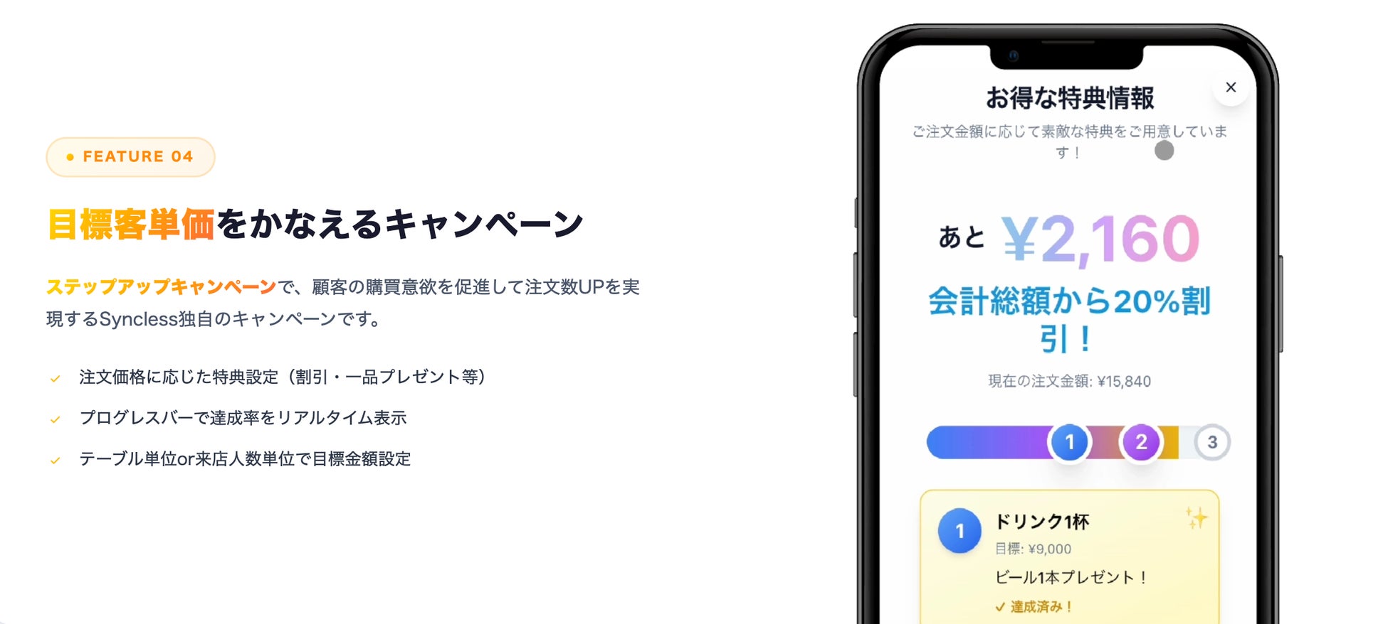 顧客の購買意欲を促進して注文数UPを実現するSyncless独自のキャンペーンです。