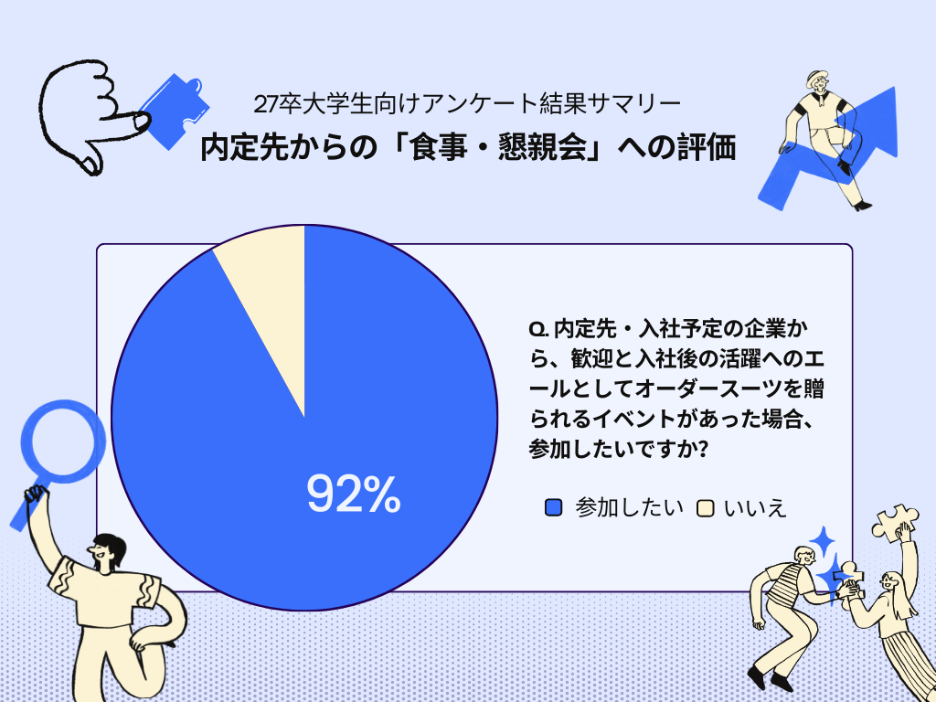 27卒の内定者フォローは「食事会」から「未来への投資」へ。92%の学生が「オーダースーツを贈るイベント」を熱望。
