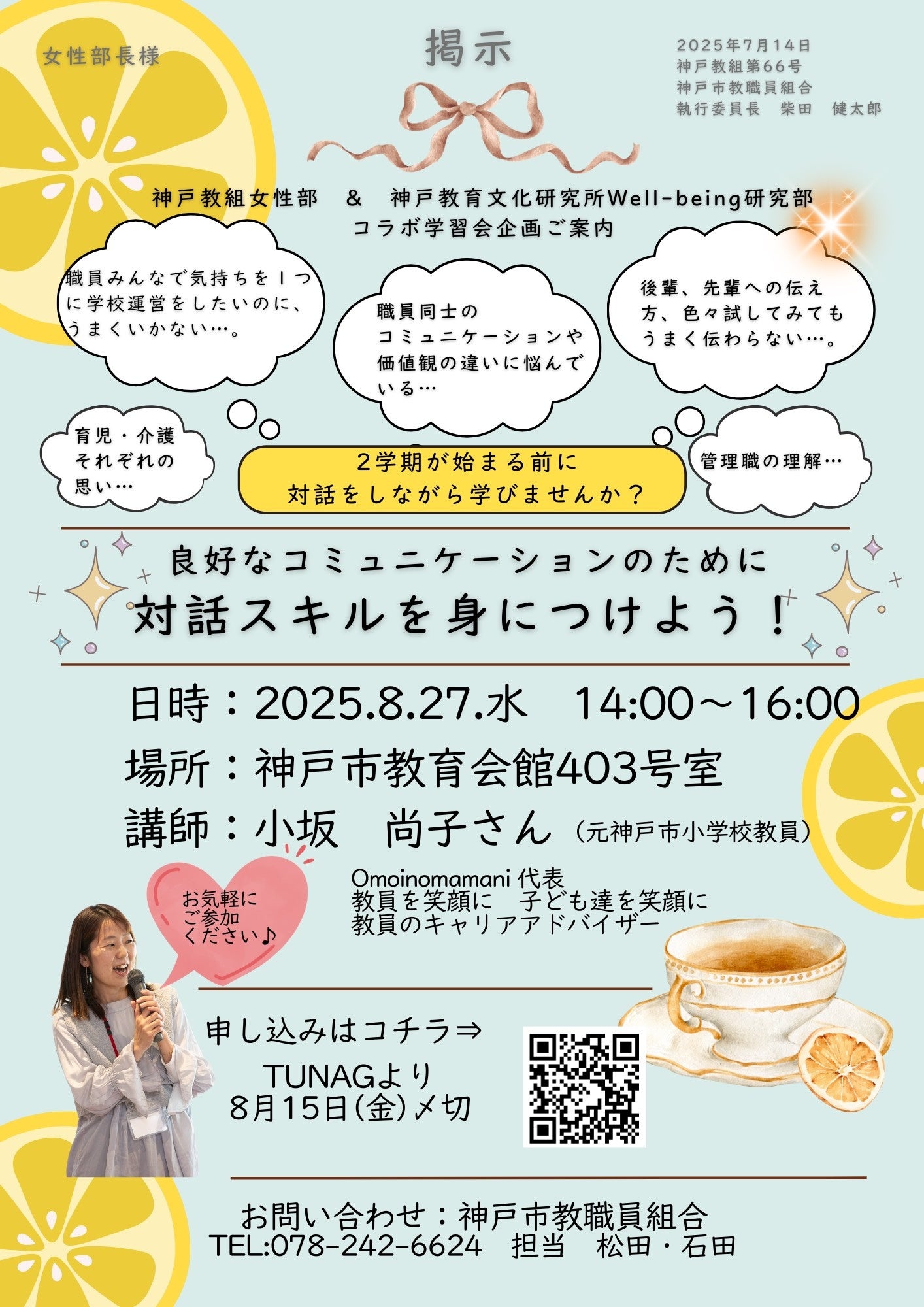 ・教員ママ向けの育休復帰前後の不安軽減セミナー