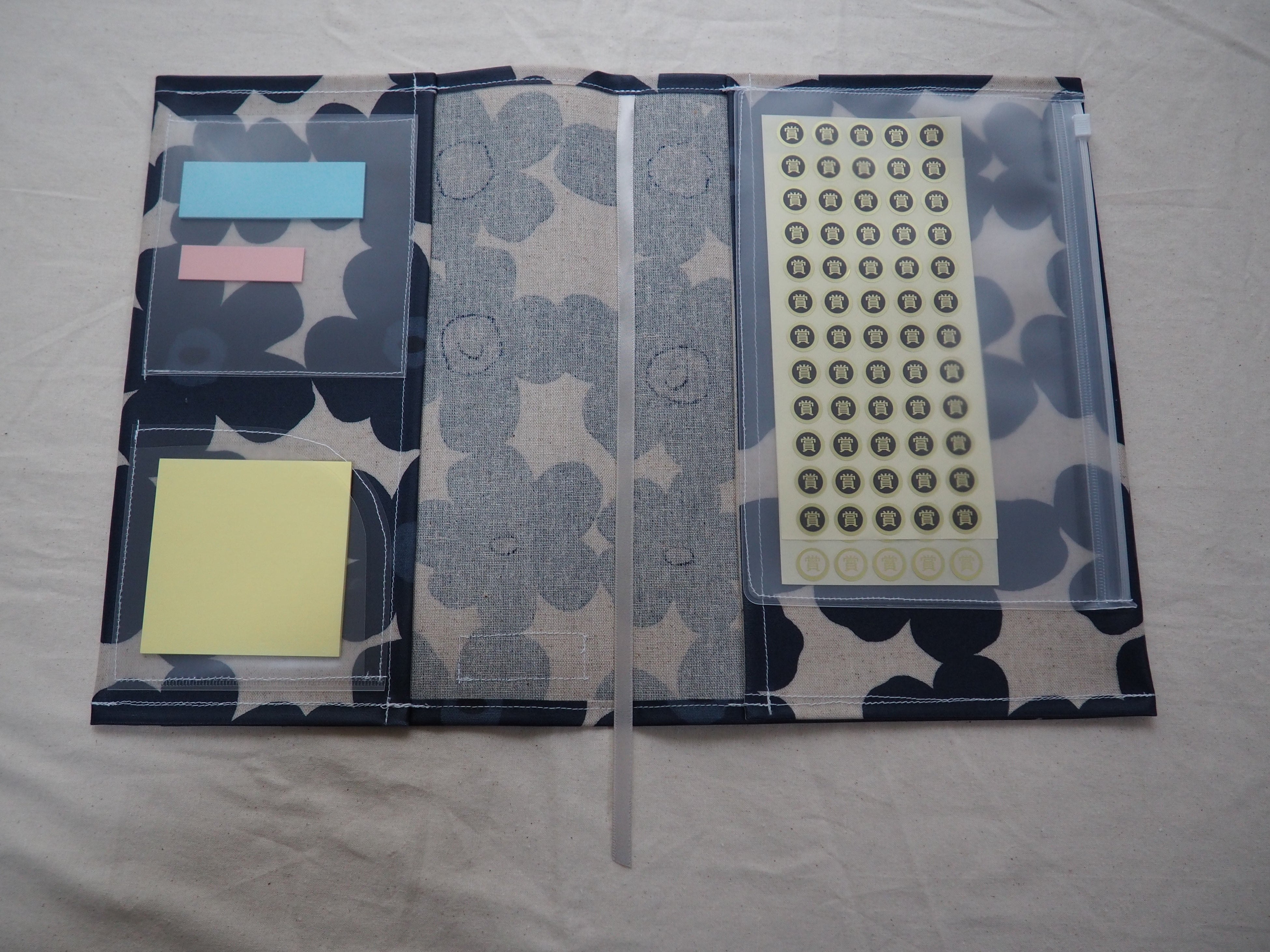 手帳カバーの開発は、現役の学校の先生方に「どのような機能があれば嬉しいか」を 一つひとつ確認するところから始まりました。教室は砂埃が多く、汚れやすい環境であるため、汚れが目立ちにくく、毎日使う採点ペンも拭いて落とせる素材にこだわりました。また、児童から回収する重要なプリント類を一時的に保管できる仕様にしたり、毎日使う付箋が汚れずに取り出せるカバーもつけて、ストレスなく仕事ができる手帳カバーにしました。これらの要素を基に、しおりやペンを差し 込める構造へと設計を広げて、試作品10名に使用してもらい、現場の声を反映しながら改良を行いました。