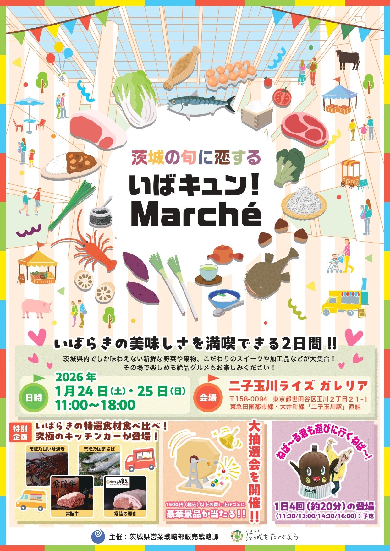 茨城県は、いばらきの選りすぐりの美味しさをお届けする『いばキュン!Marché』を、2026年1月24日(土)・25日(日)の2日間、二子玉川ライズ ガレリアで開催します。