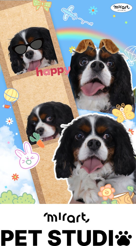 加えて、AIによる合成技術を「動物」にも対応。愛犬や愛猫の姿を瞬時に切り抜き背景と合成したクオリティの高い写真プリントとデータを作成できる機器「Mirart PET STUDIO」としても展開を開始。既に「わんこ証明写真機」やドックランなどでの常設サービス機器として活用されております。