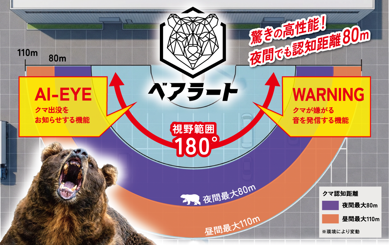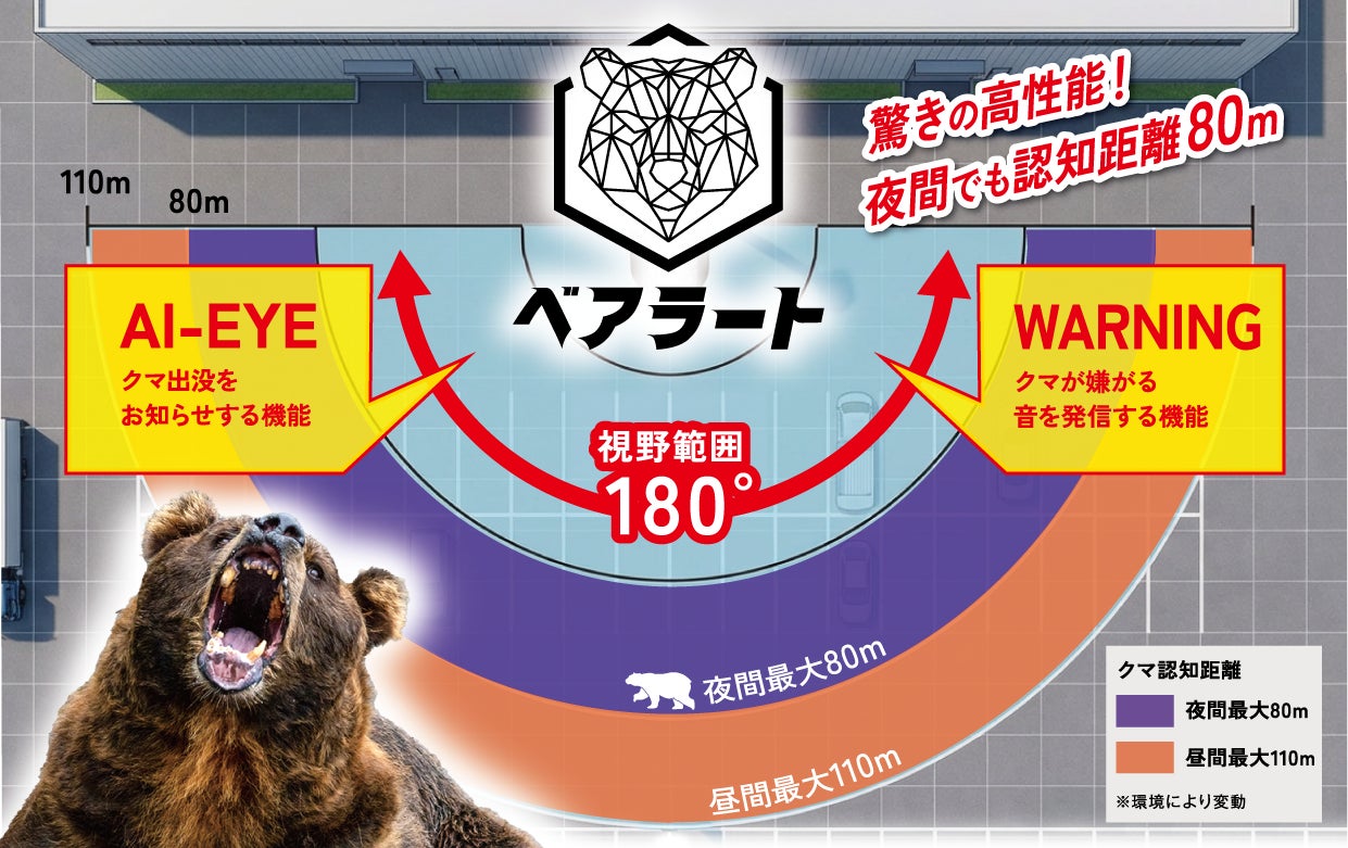 クマを専門対象とした高精度AI認識による「圧倒的な認識率」と「安全性」、「ベアラート」は単なる監視カメラではなく、クマ対策に特化した「安全装備品」です 。
