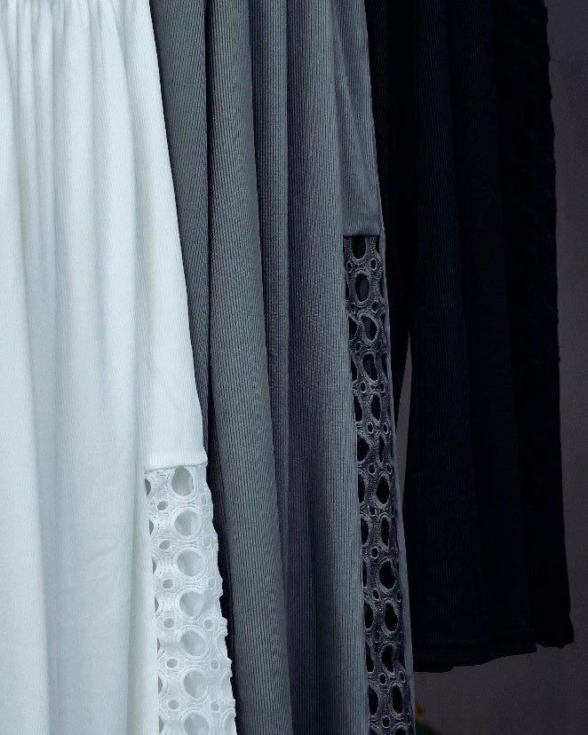 大人女性の悩みに寄り添い、腰まわりからヒップラインまで自然にカバーするシルエット設計を採用。身体のラインを拾いすぎない立体的なフォルムにより、リラックスしながらも美しく見せるバランスを実現しています。気になる部分をさりげなく包み込み、安心感のある着心地を提供します。さらに、ウエスト部分にはゴム仕様を採用し、裏地を施すことでパンツラインが出にくく、ホワイトカラーでも透けにくいなど、細部にまで配慮しています。