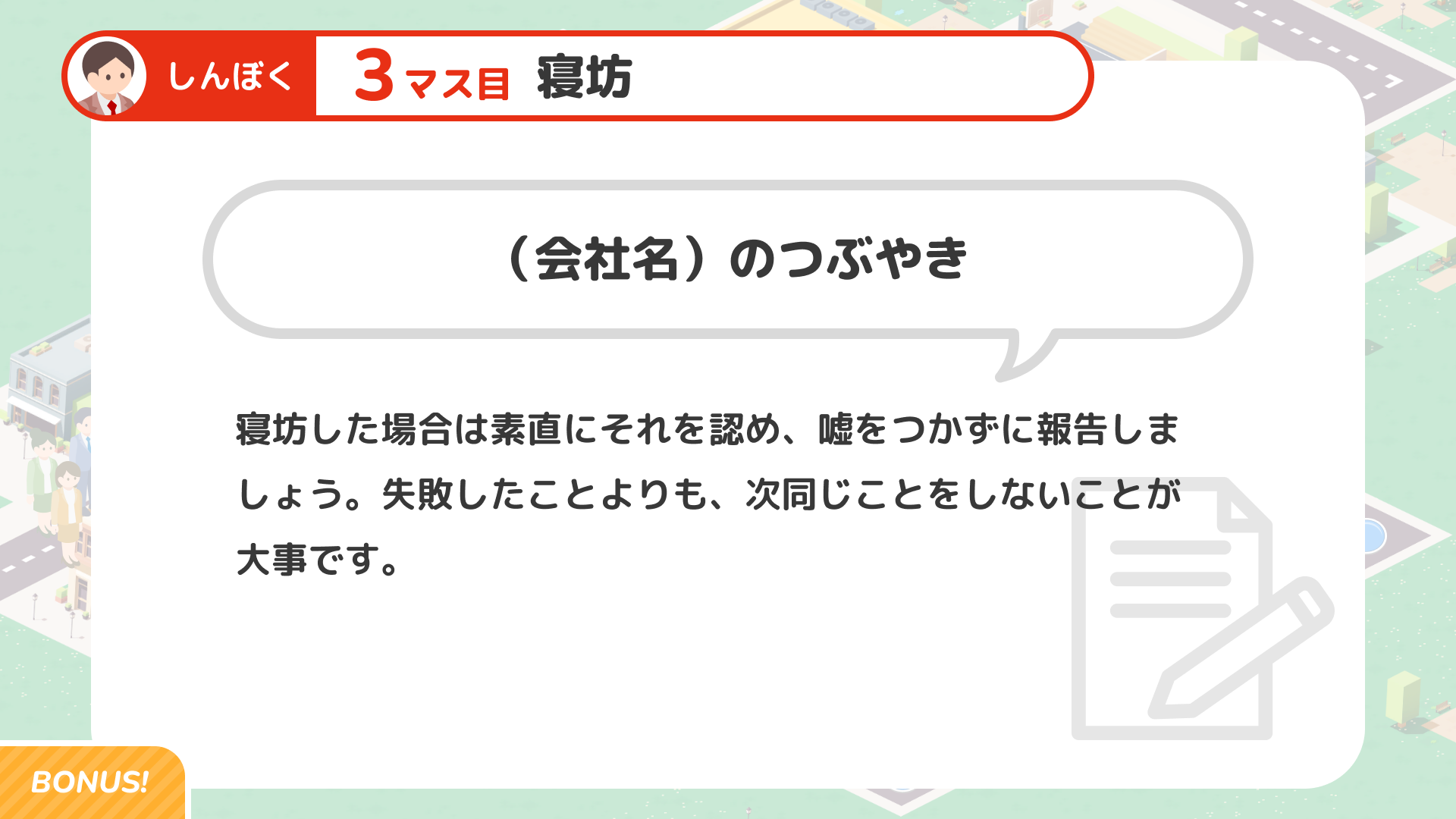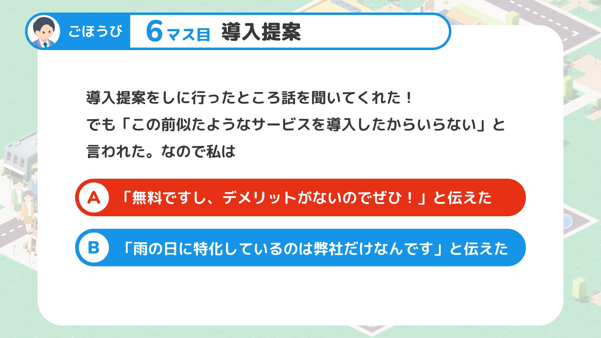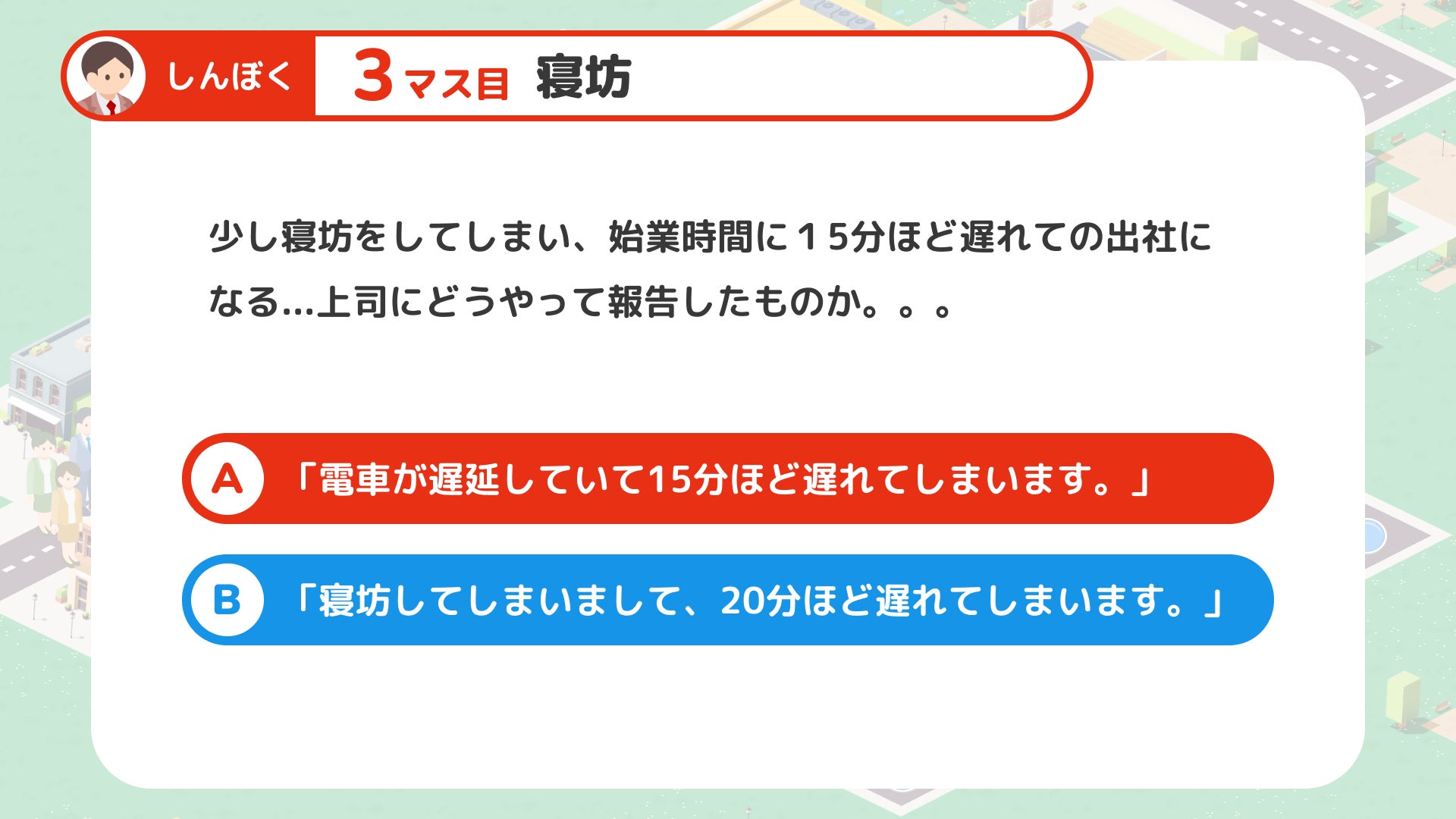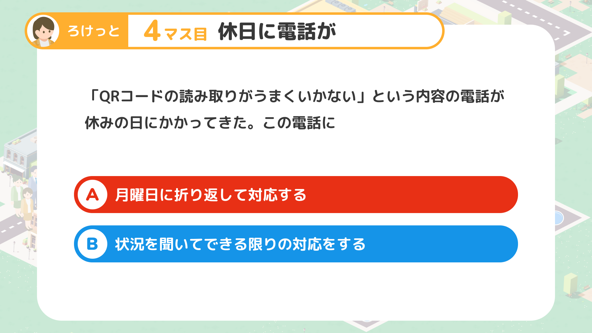 最大20名が4チームでプレイし、日々の判断シーンを「状況・選択肢・結果」としてマス化、チームで議論しながら意思決定を疑似体験できます。