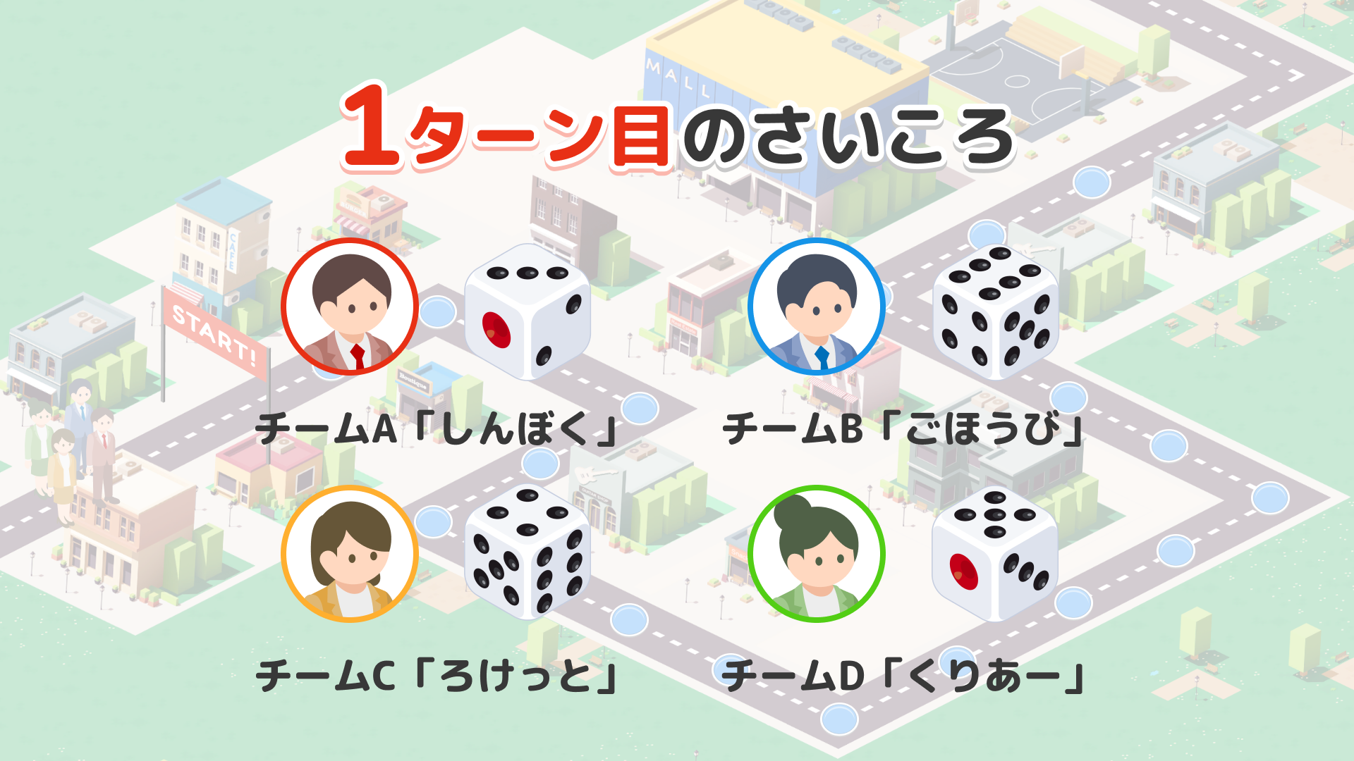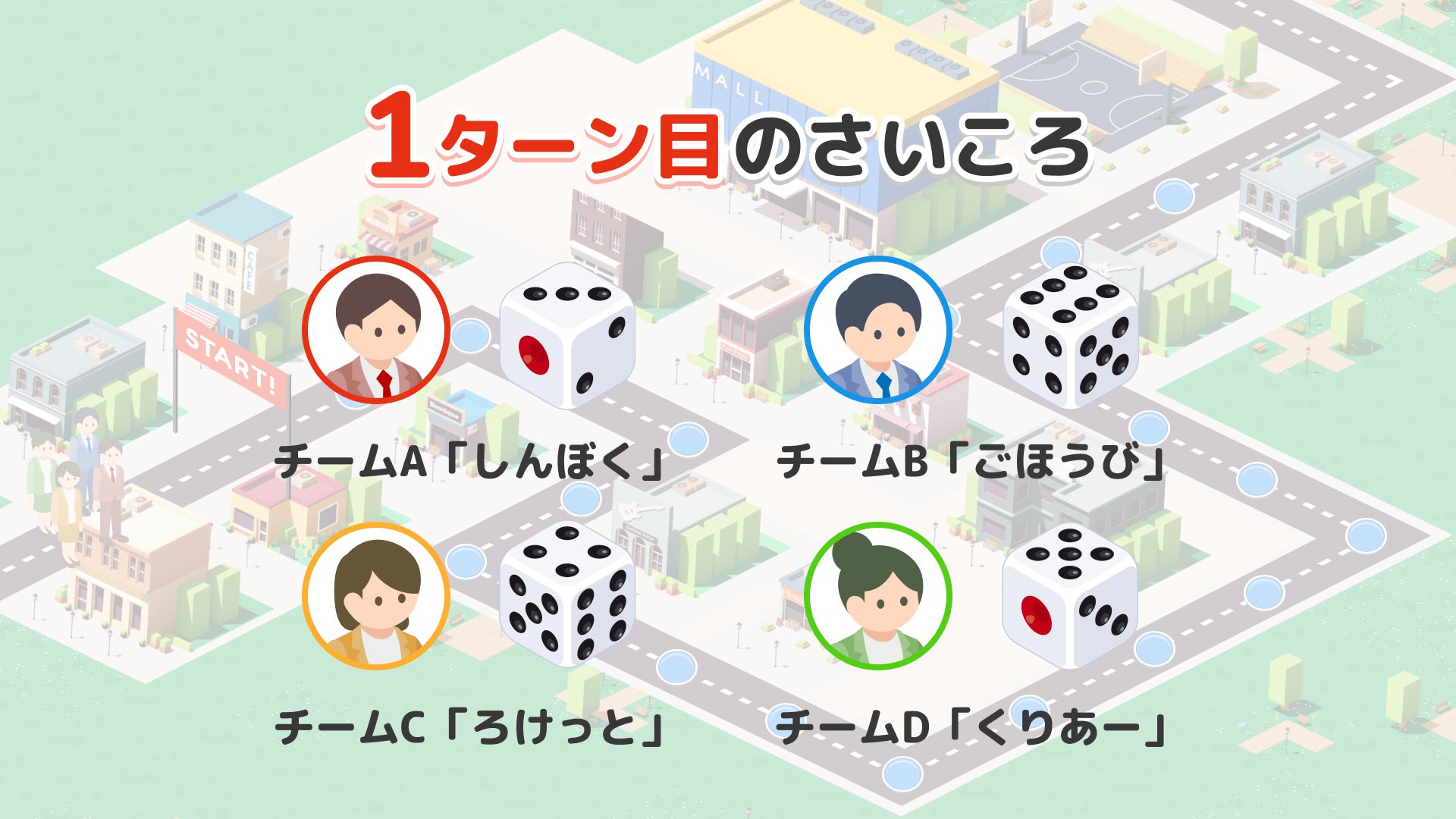 チーム名が決まったら、1ターン目のサイコロを振ります。