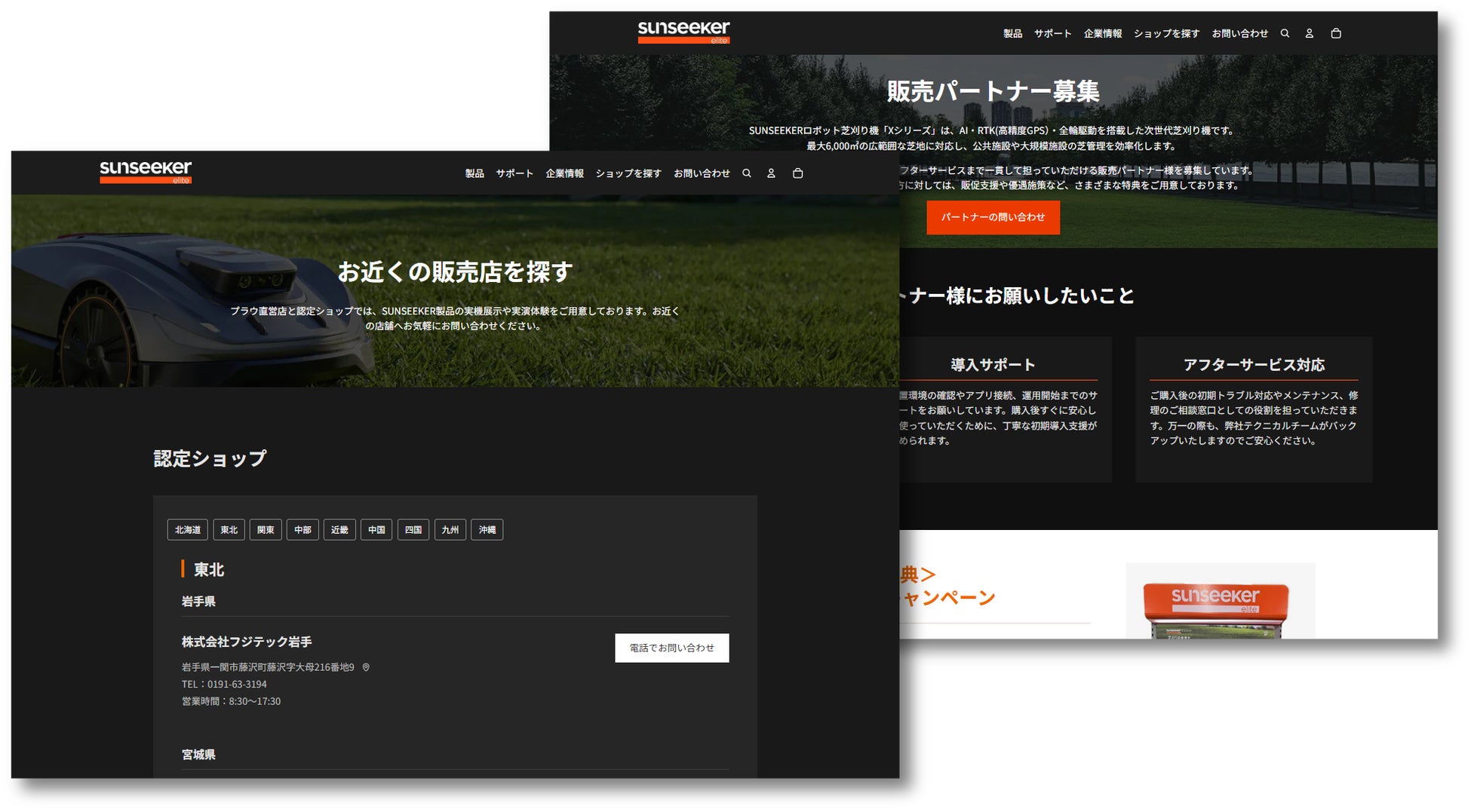 認定ショップ一覧(実機展示・実演体験の案内): https://sunseeker.jp/pages/dealer-locator