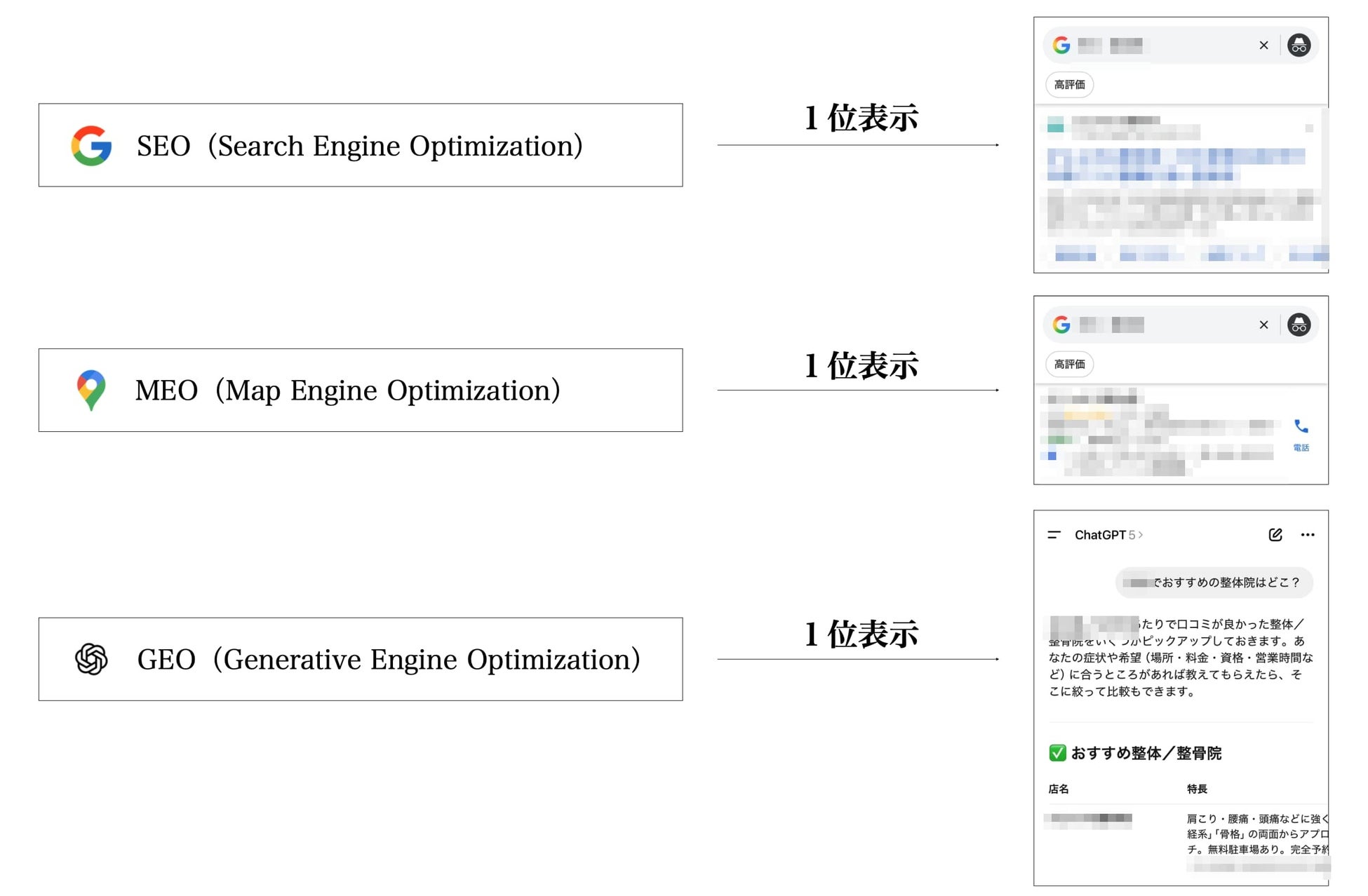 株式会社ネイクの得意分野は、広告費をかけずに自然検索流入のみで集客を倍増させることです。とあるクライアントの、SEO、MEO、GEOの結果は次の通りです。