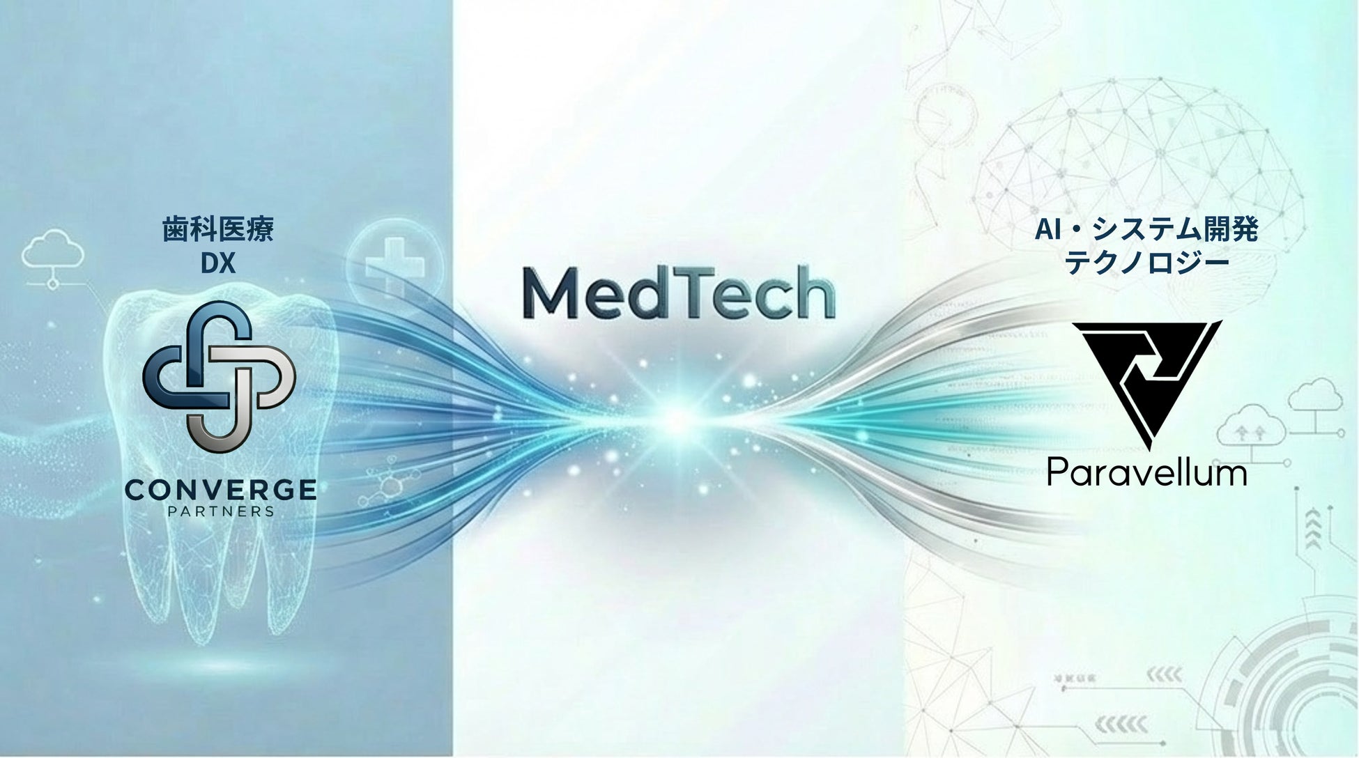 AIシステムの研究・開発を行う合同会社Paravellum(本社:福岡県福岡市、代表社員:相良春樹、以下「当社」)は、 歯科医院向けDXプロダクトを開発する株式会社ConvergePartners(本社:埼玉県さいたま市、代表取締役:登坂悠也、以下「CP社」)との間で包括支援・開発契約を締結するとともに、 同社の第三者割当増資を引き受け、資本業務提携を締結したことをお知らせいたします。