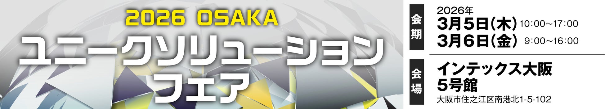ユニソル株式会社(本社:大阪府中央区、代表取締役社長:古里 龍平)は、当社が運営事務局を務める展示会「大阪ユニークソリューションフェア」を、大阪府大阪市のインテックス大阪にて2026年3月5日(木)、6日(金)の2日間にわたって開催いたします。