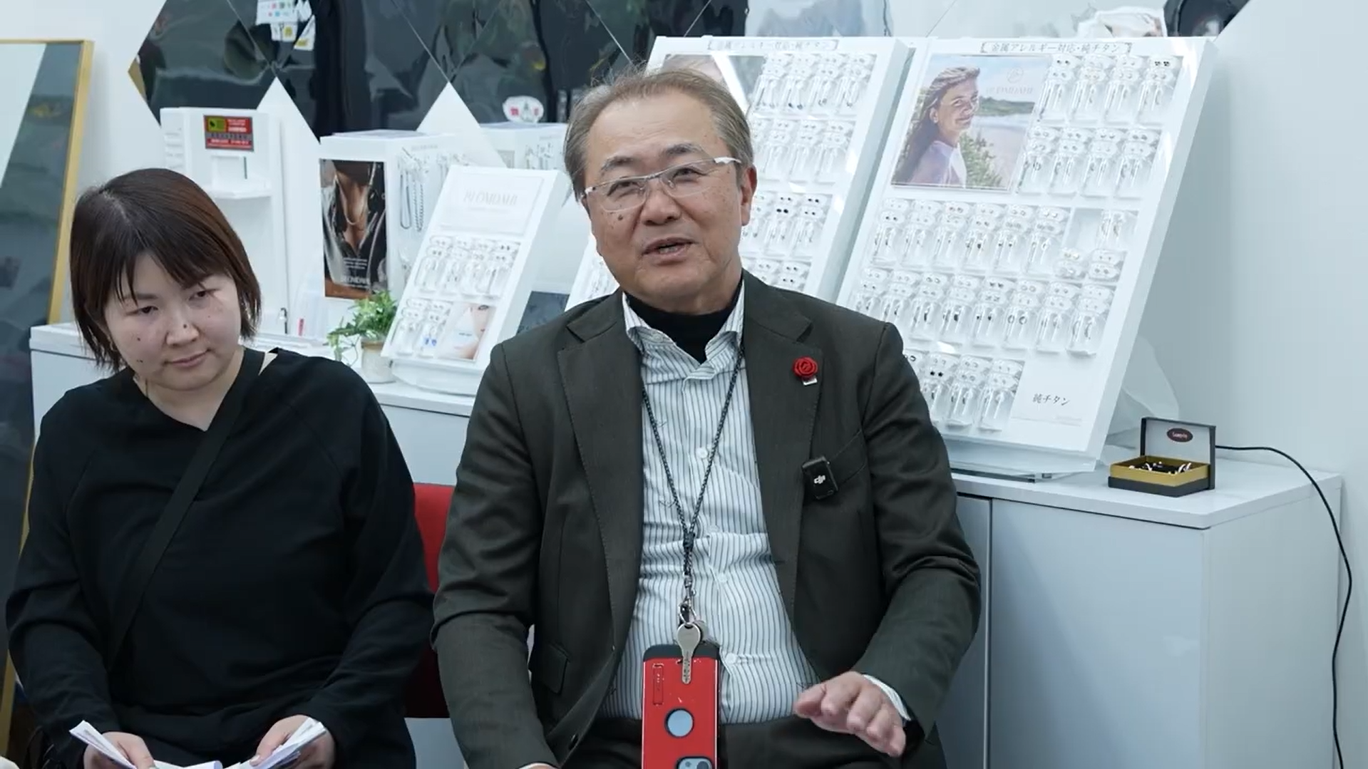 これを受け、オカダ医材株式会社の岡田典久会長も現場の実感を語りました。 「実際に夏場はお客様が増える傾向にあります。常に汗をかく環境にあるプロゴルファーの方々にも、汗に強い純チタンのピアスは大変喜んでもらっています。」