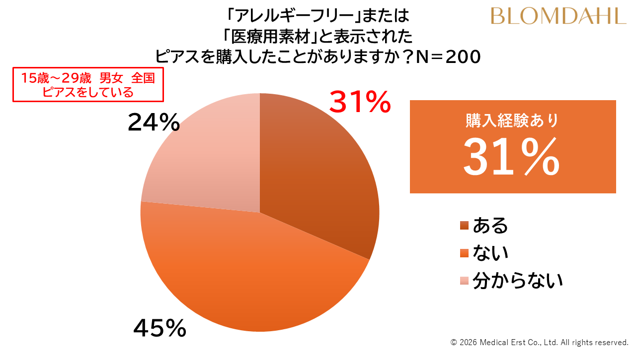 現在、多くのユーザーが「雑貨店」や「アクセサリーショップ」で購入していますが、特定の安全なブランド(アレルギーフリー製品)を指名して「購入経験がある」と答えたのはわずか31%でした。多くが素材の安全性を確信して選んでいるのではなく、従来の導線でなんとなく購入していることが分かりました。