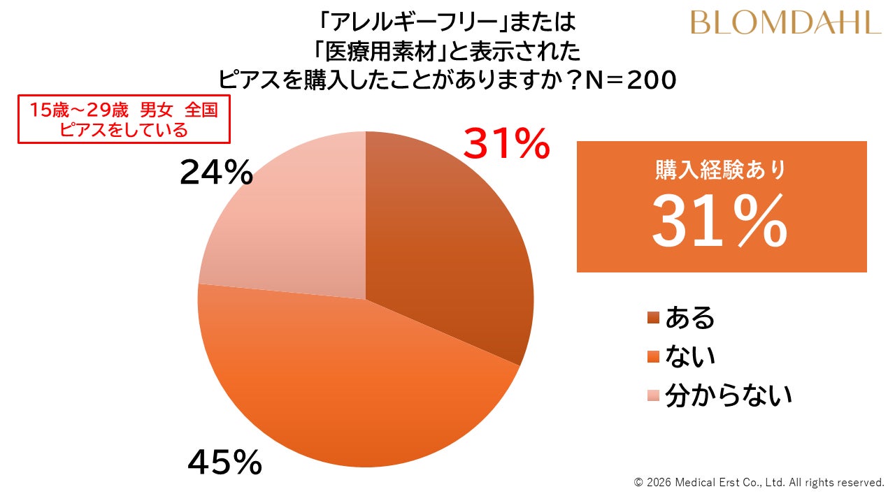 本調査は、株式会社クロス・マーケティングが提供するセルフ型アンケートサービス「QiQUMO(キクモ)」を通じて、2026年2月17日~18日にインターネットで実施(有効回答数1000)。なお、そのうちピアス着用男女200人を対象に、金属アレルギーに関する詳細調査を実施しています。