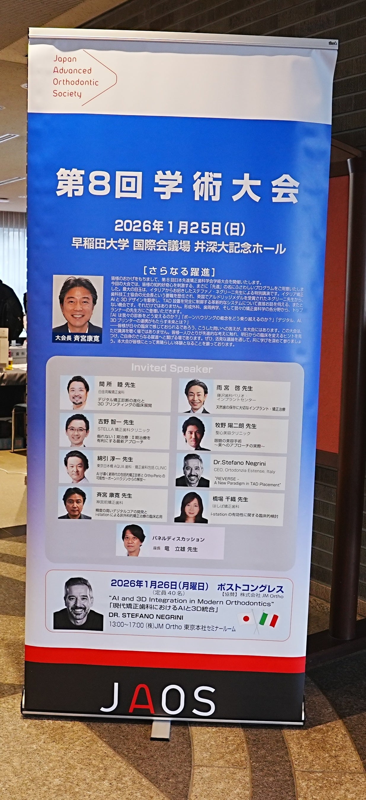 矯正歯科治療におけるデジタル矯正やAI活用をテーマとした「第8回日本先進矯正歯科学会学術大会」が、2026年1月25日(日)、早稲田大学 国際会議場 井深大記念ホールにて開催されました。本学術大会は、矯正歯科医を中心に、診断精度や治療計画の高度化、臨床現場での実用性について議論を深める場として開催されており、オカダ医材株式会社は第1回大会から事務局として運営を支援し、今年で8年目を迎えます。