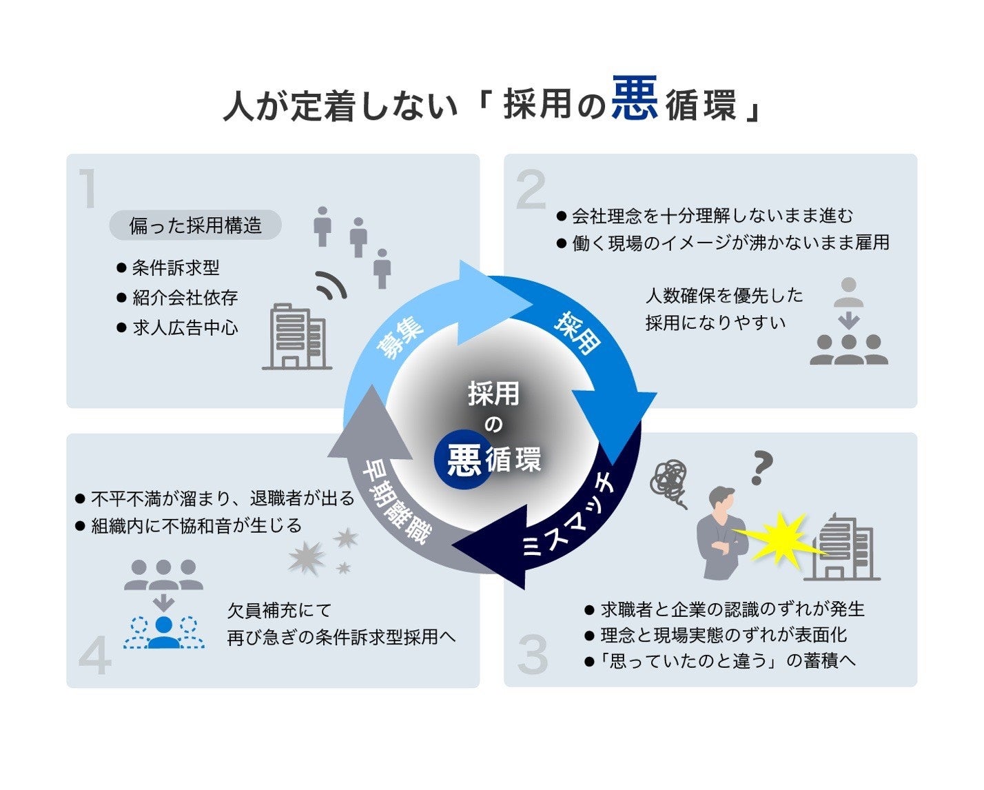 採用 → ミスマッチ → 早期離職 → 再募集