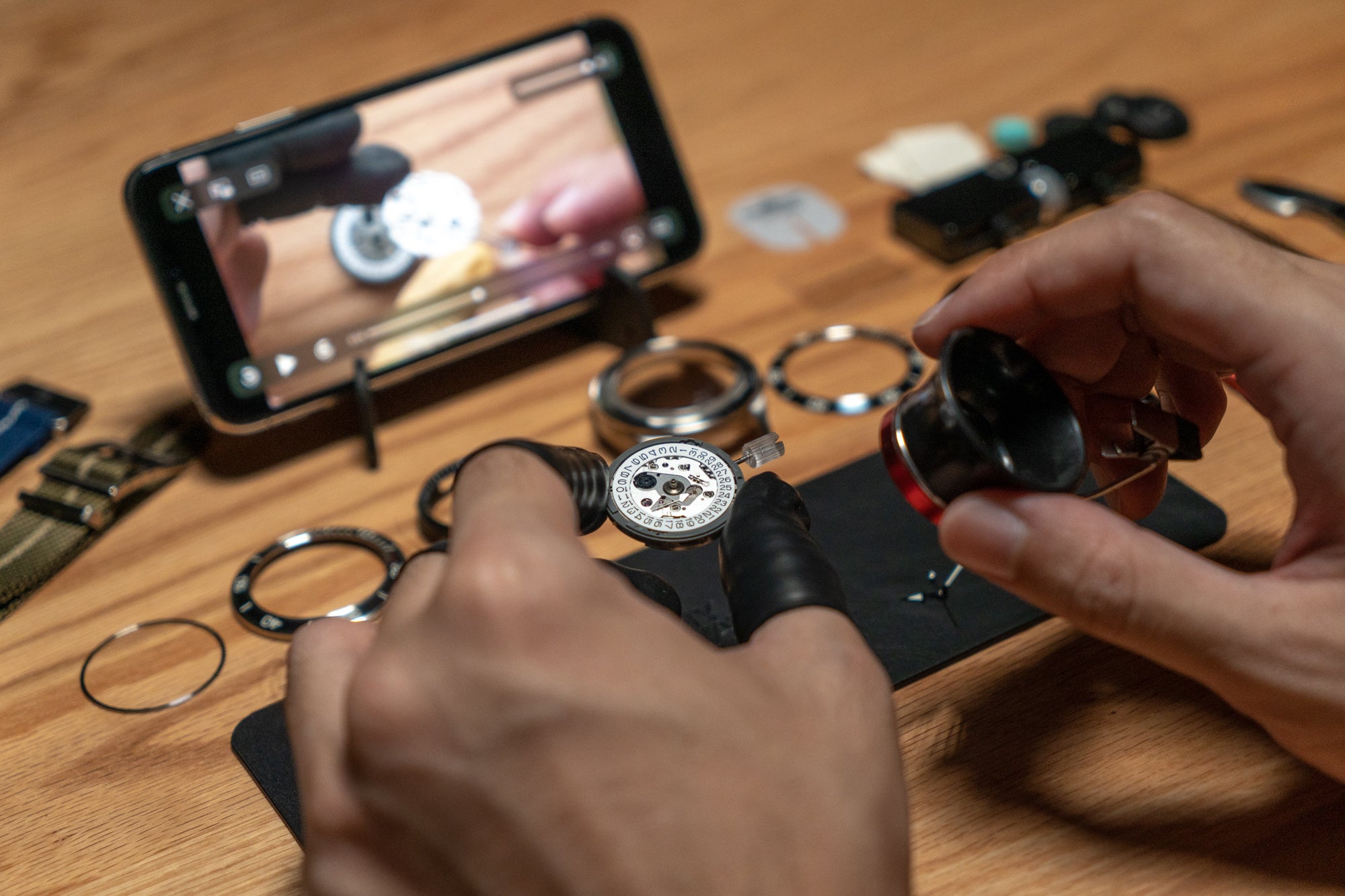 ワークショップで培ったノウハウをもとに改良を重ね、専門家の直接サポートがなくても自宅で体験できる仕組みを構築。2020年春には、時計パーツ・専用工具・動画ガイドを一式揃えた「DIYウォッチキット」を発売しました。現在までに世界中で30,000件以上の販売実績を重ね、幅広い時計愛好家に支持されています。
