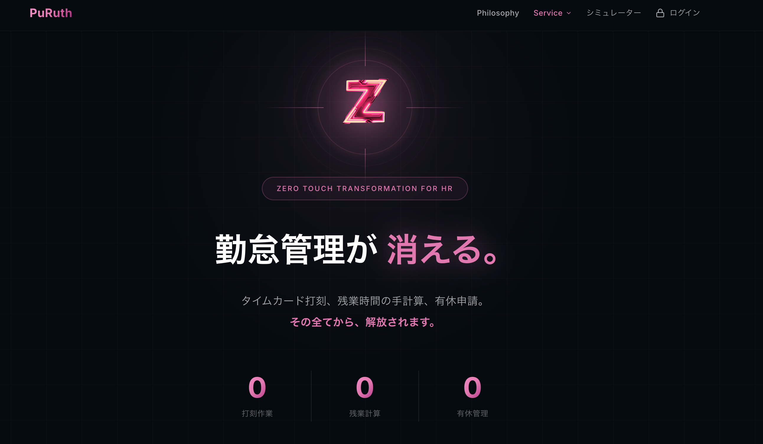 2026年4月7日、PuRuth株式会社(本社:東京都渋谷区、代表取締役:宮地 正樹)は、AI駆動型の勤怠・労務・稼働管理業務変革ソリューション 「Zero Touch Transformation for HR:ZTT-H」 の提供を開始いたします。ZTT-H(ゼット・エイチ)は、3月に提供を開始した経費精算ソリューション「ZTT-E」に続く、ZTTシリーズ製品の第2弾。従業員がカレンダーに記録した日々の活動情報から、出退勤・労働時間・残業・有給休暇等の取得情報を自動で収集・判定・集計し、勤怠管理/稼働管理/労務管理をZero Touchで完結させます。出退勤の打刻も、勤怠表の入力も、面倒な修正作業も不要 ── ルール通りにカレンダーを使い、普段通り仕事をするだけで、勤怠管理業務が完了します。