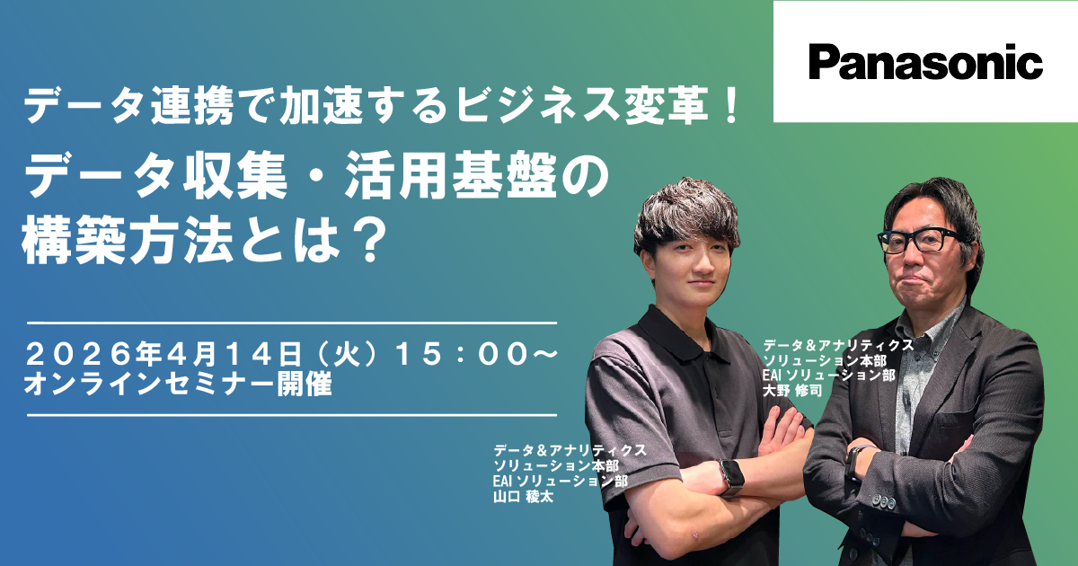 パナソニック デジタル株式会社は、2026年4月14日(火)『データ連携で加速するビジネス変革!データ収集・活用基盤の構築方法とは?』セミナーを開催します。