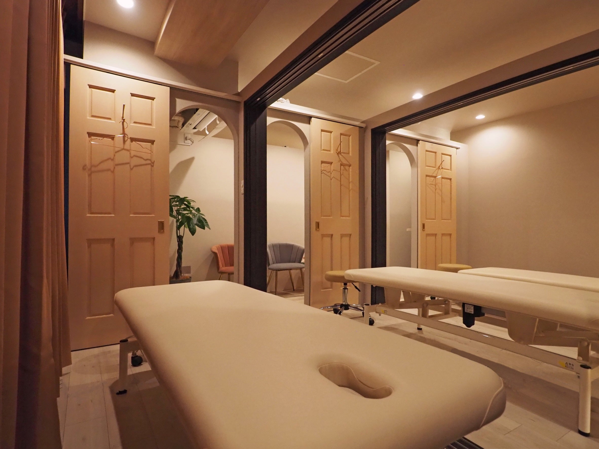 個室施術室5室完備 月額制で利用可能 週1回・副業利用も可能 施術備品完備 清掃・衛生管理は施設側対応 書類作成環境完備 複数施術者在室による安心環境
