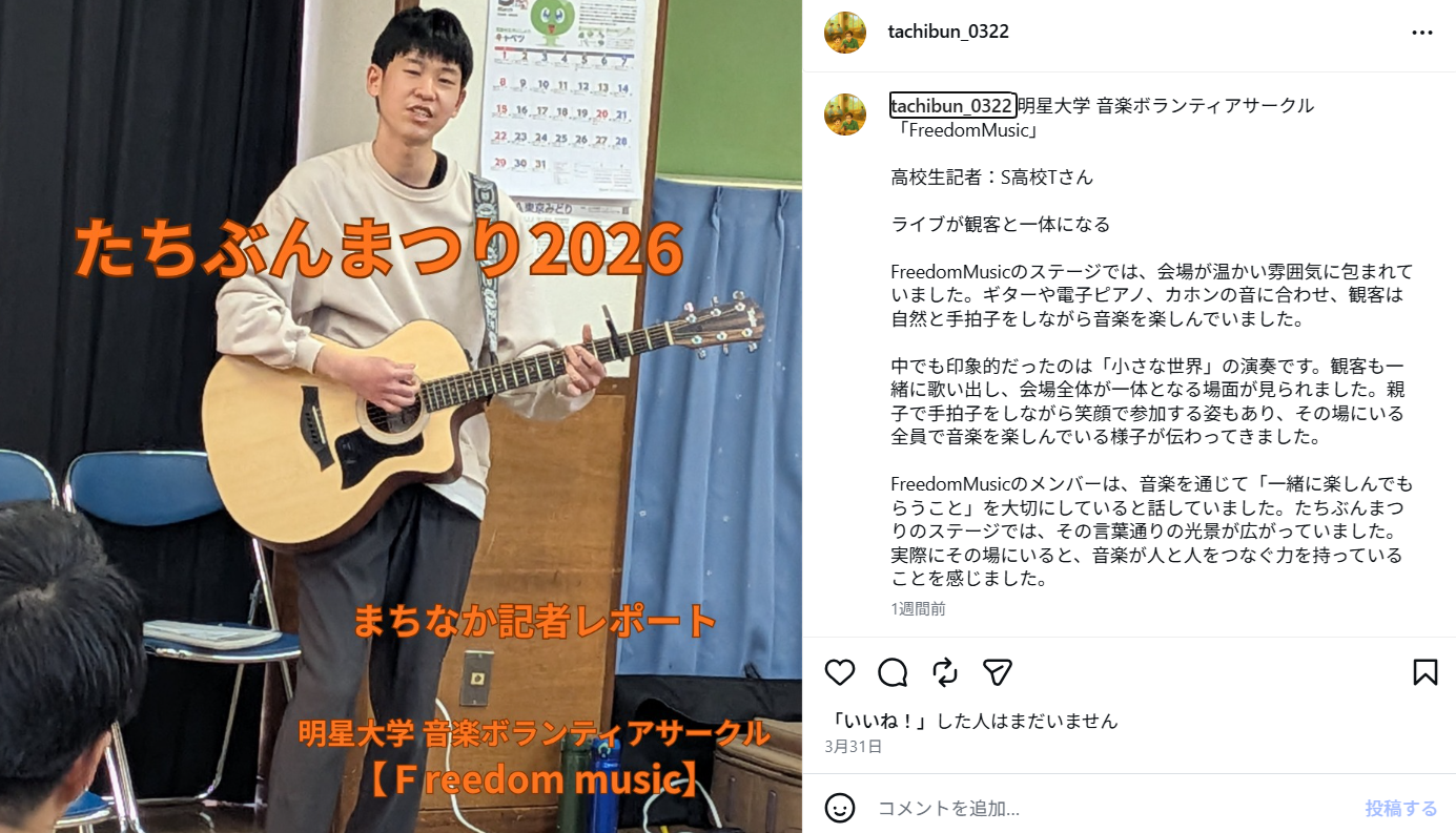 ボランティア団体「おもしろ工作キャンプ」(代表:鈴木明)は、2026年3月22日、立川市柴崎会館にて地域交流イベント「たちぶんまつり」を開催しました。