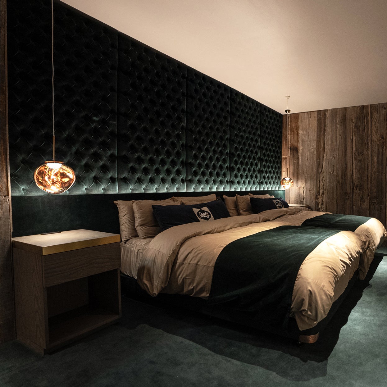 海外出張の多い代表・髙木が、ヨーロッパやアメリカで目にしてきた建築物や内装から着想を得て空間づくりに反映。家具はヨーロッパから直輸入したものを取り入れています。また、上質な睡眠体験を追求し、世界的ベッドブランド「Sealy」のマットレスを全室に導入しています。
