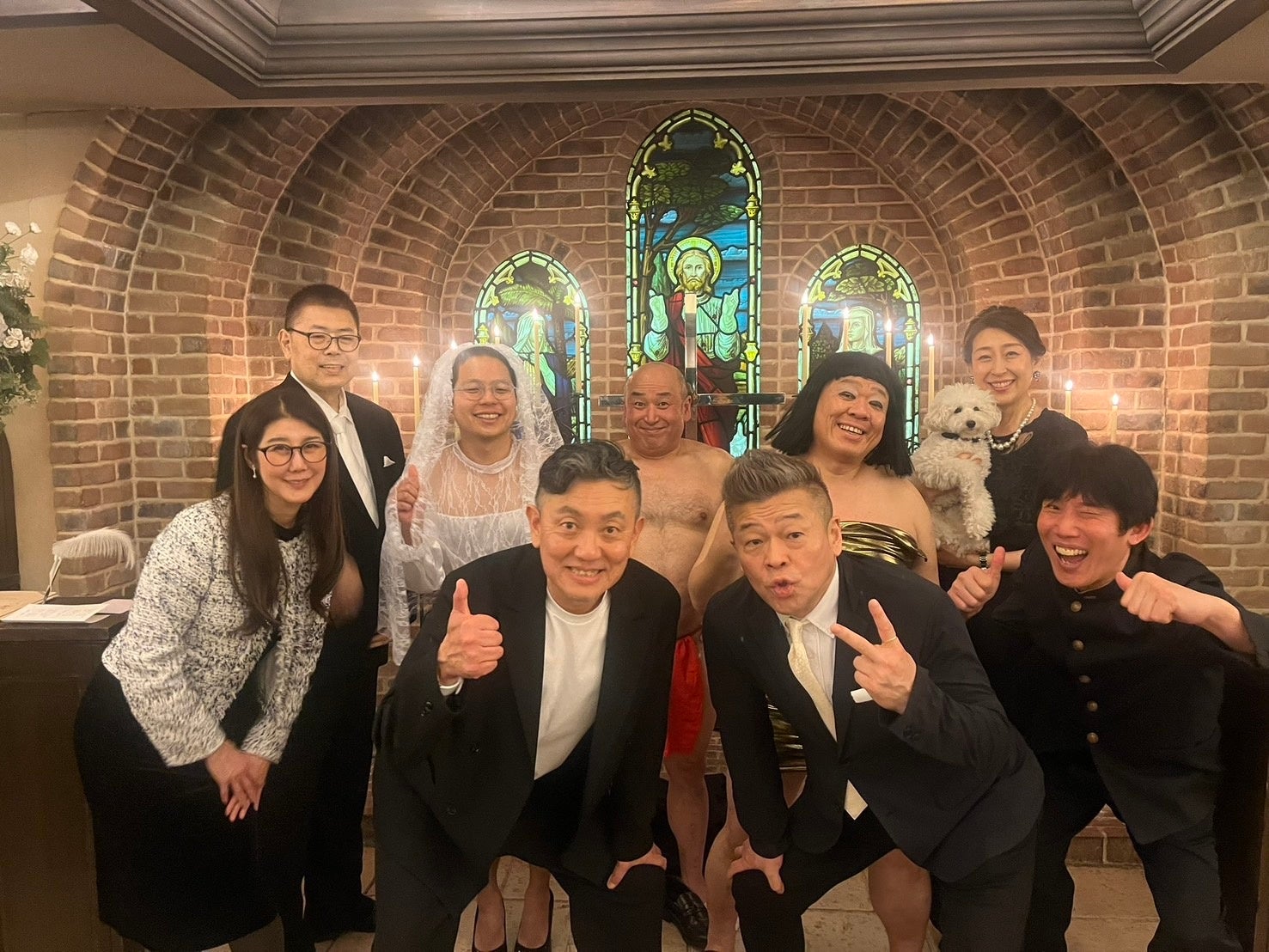 新婦の父役として登場し、今日は大好きな古賀シュウのものまねを完コピしてきましたという体でネタを披露。鈴木雅之さん、石破茂元総理、蛍原徹さん、浜口京子さん、蒙古タンメン白根社長、武田鉄矢さんなど怒涛のものまねを披露、最後はとんねるずの石橋貴明さんが絶賛した2億4000万の瞳ものまねメドレーで笑い声は本日最大となった。