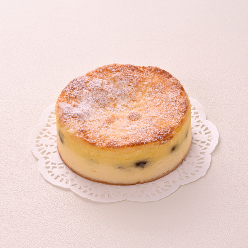 濃厚なチーズの味わいの中に、レーズンのやさしい甘みが広がる、奥行きのあるチーズケーキです。