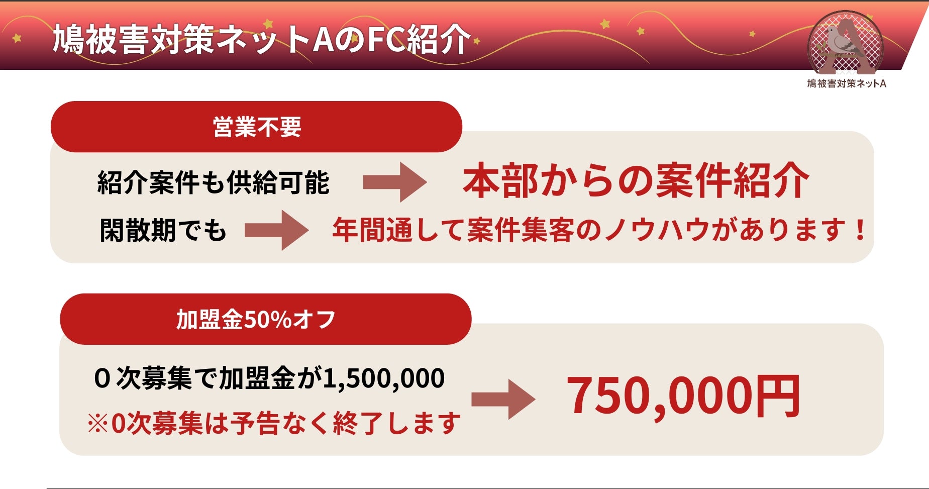 ■ 『鳩被害対策ネットA』フランチャイズ 5つの強み