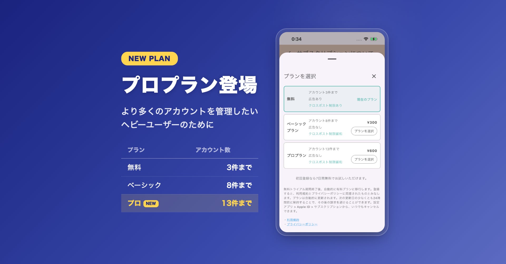 ※ベーシックプラン、プロプラン共に広告非表示、クロスポスト制限の緩和(5アカウントまで同時共有可能)が行われます。