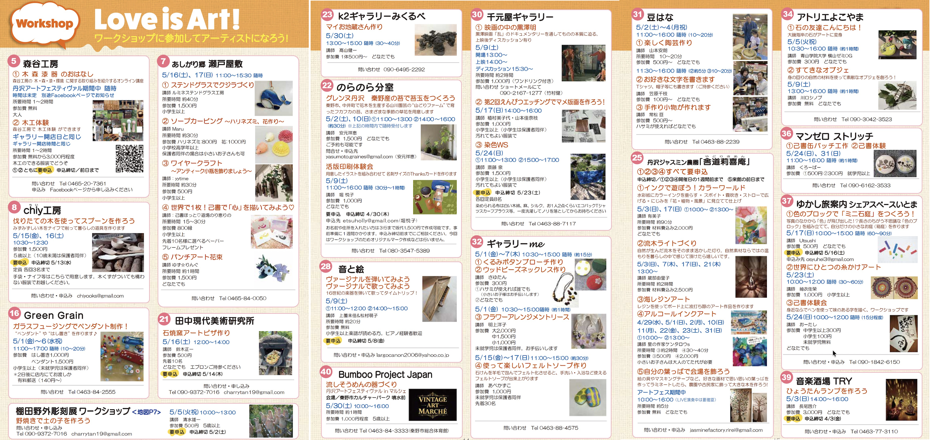 今年は20周年企画として丹沢棚田野外彫刻展、5WINDSー5人の版画家、黒澤明ドキュメンタリー上映会を企画しました。また4/25にはイオン秦野ショッピングモールにてオープニングイベントも開催します。