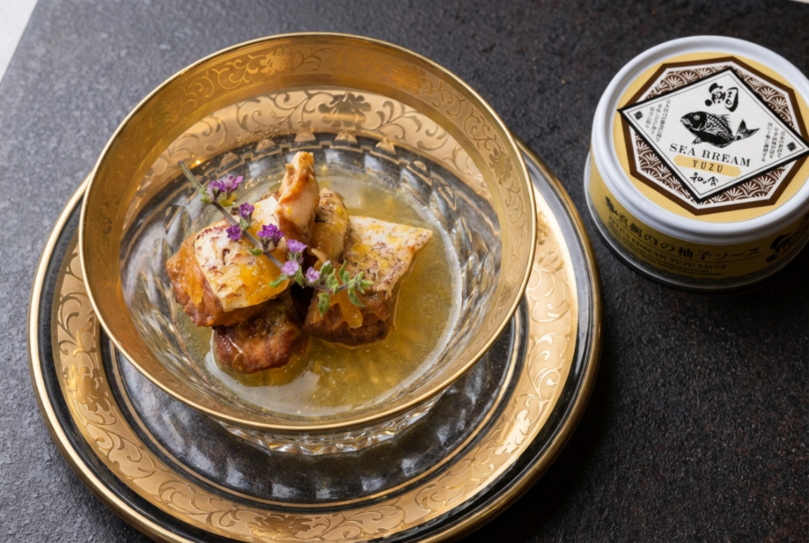 愛媛県産真鯛と無農薬柚子を使用。開けるだけで、料亭の一皿が完成する。