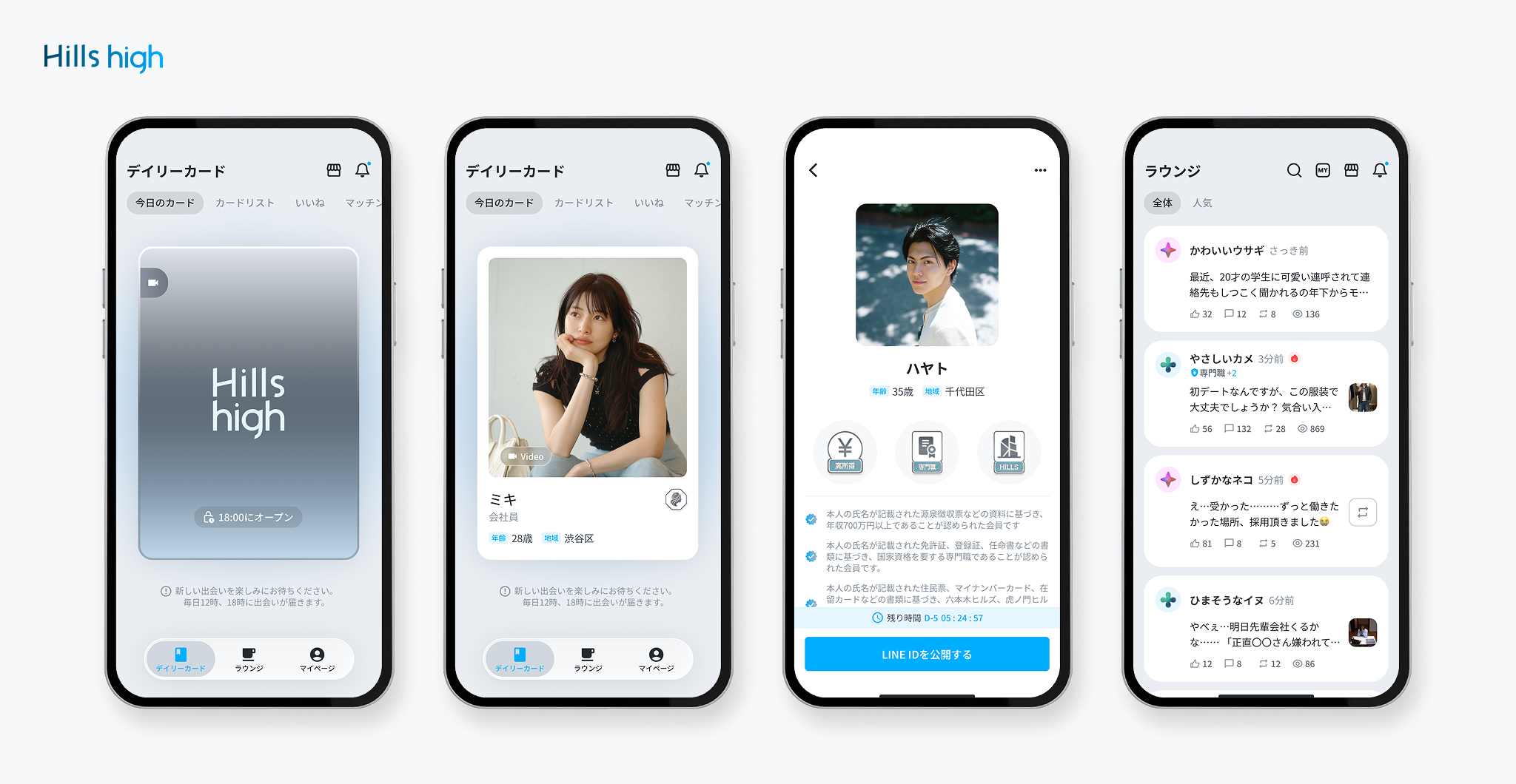 Hills highは、単なるデーティング機能にだけではなく、会員同士の自然な交流を支援するコミュニティ機能「ラウンジ」を提供します。これにより、利用者は出会いの前から相手の雰囲気や価値観をより深く知ることができます。